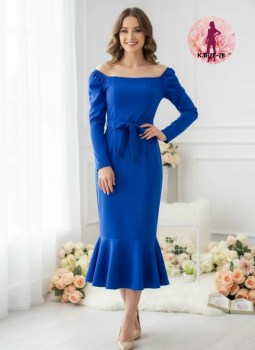 Платье под поясок, с оборкой, длинными рукавами и широким вырезом каре воплощение нежности и женственности, созданное для того, чтобы подчеркнуть вашу неповторимую красоту.