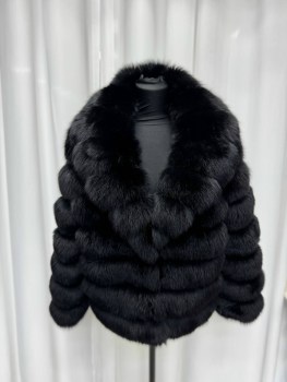 Шубка из меха натурального песца, английский воротник, комбинирована замшей, длина 60 см.