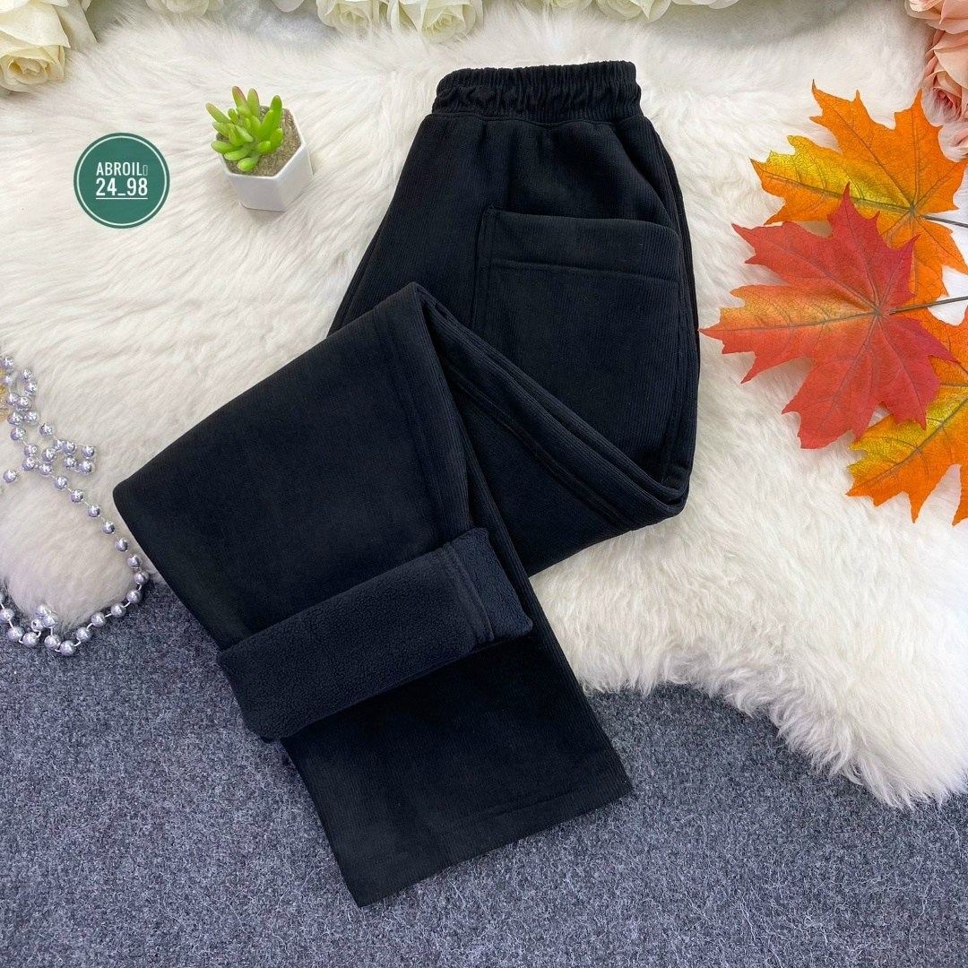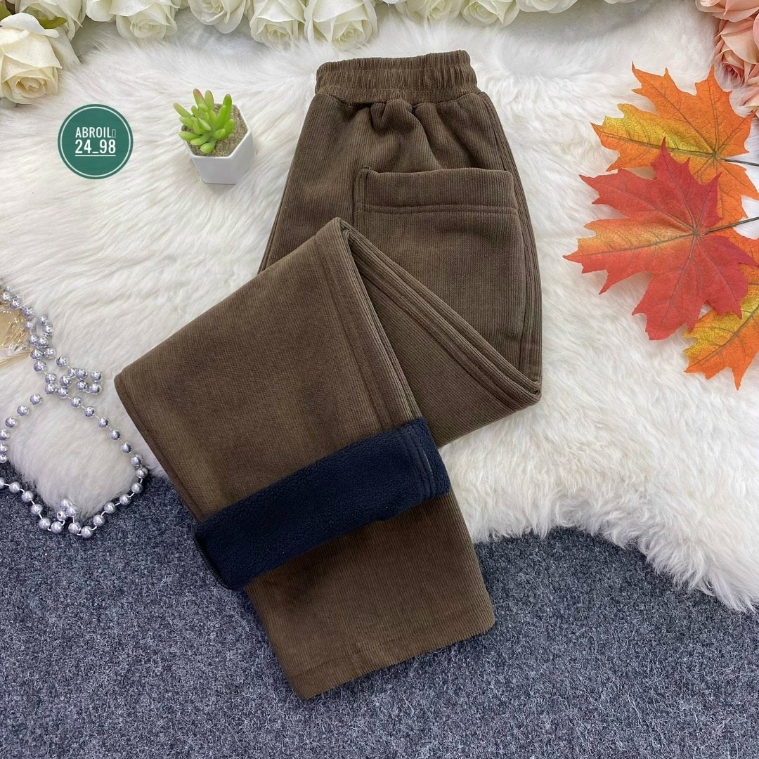 Модные брюки с высокой посадкой из тканьи вельвет с мехом.
