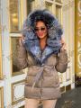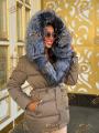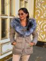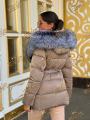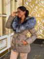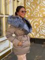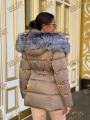 Пуховик - тренч с натуральным мехом чернобурки, длина 70 см, утеплен гусиным пухом.