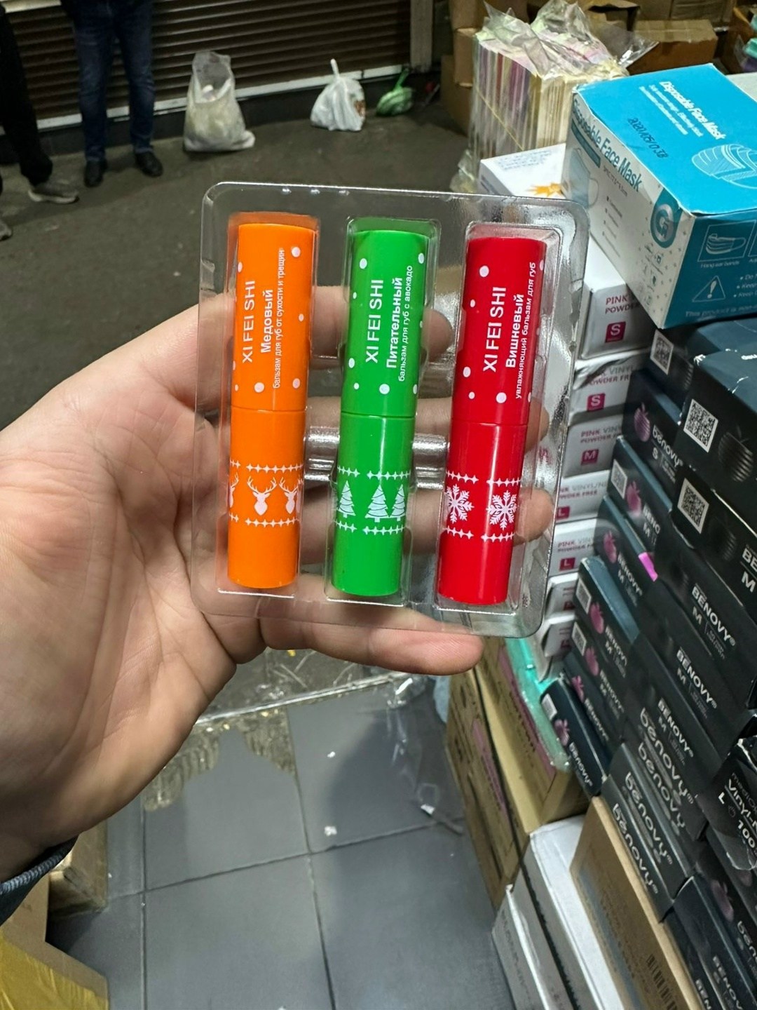 Бальзам для губ увлажняющий, подарочный набор 3 штуки.