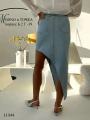 Джинсовая юбка асимметричного кроя и среза Отлично подчеркнет фигуру и сделает ваш образ стильным.