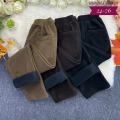 Модные брюки с высокой посадкой из тканьи вельвет с мехом.