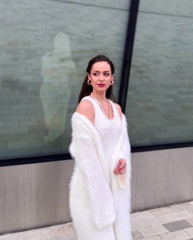 Вязаное белое платье с вязаной накидкой настоящая трендовая новинка этого сезона Оно великолепно смотрится, подчеркивая утонченность и легкость образа Платье сидит идеально, комфортно облегая фигуру и создавая нежный, стильный силуэт В нем тепло ходить в холодную погоду, а приятная по текстуре вязка дарит невероятный комфорт и уют Это сочетание уюта и моды, которое хочется носить снова и снова.