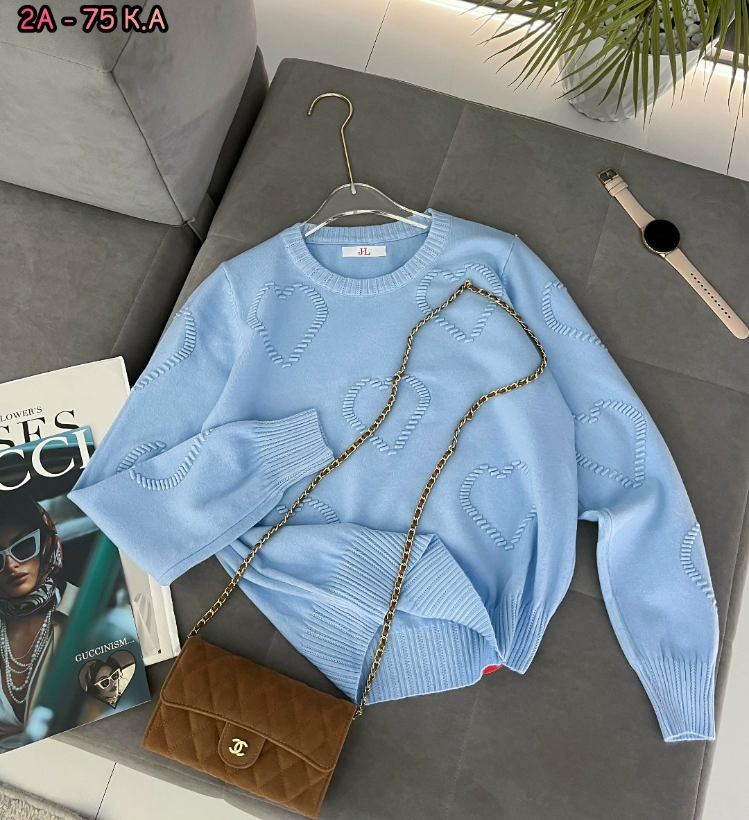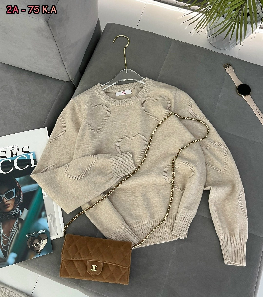 Пуловер оверсайз сердечками