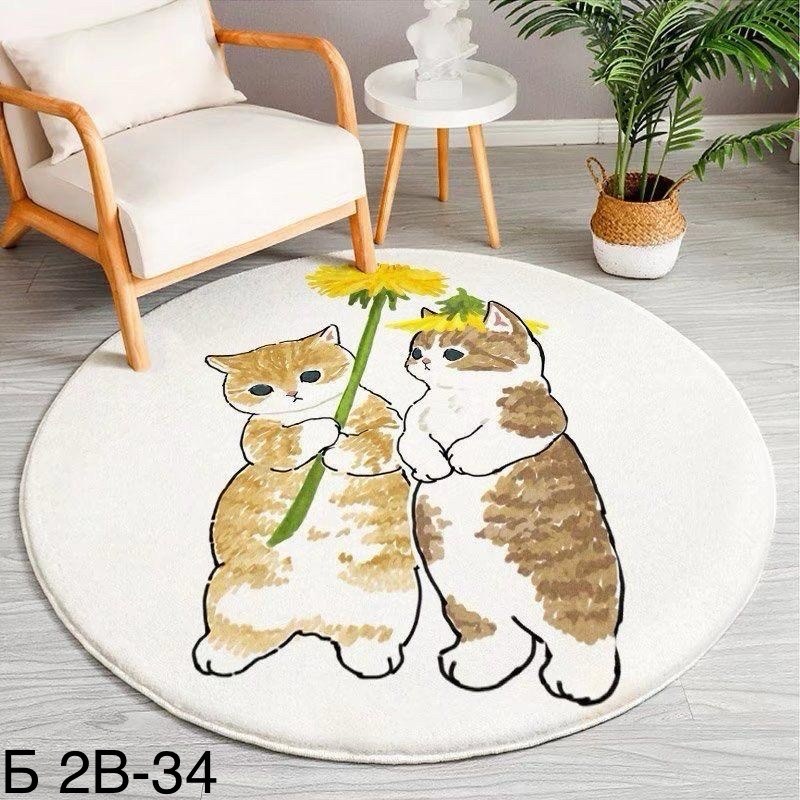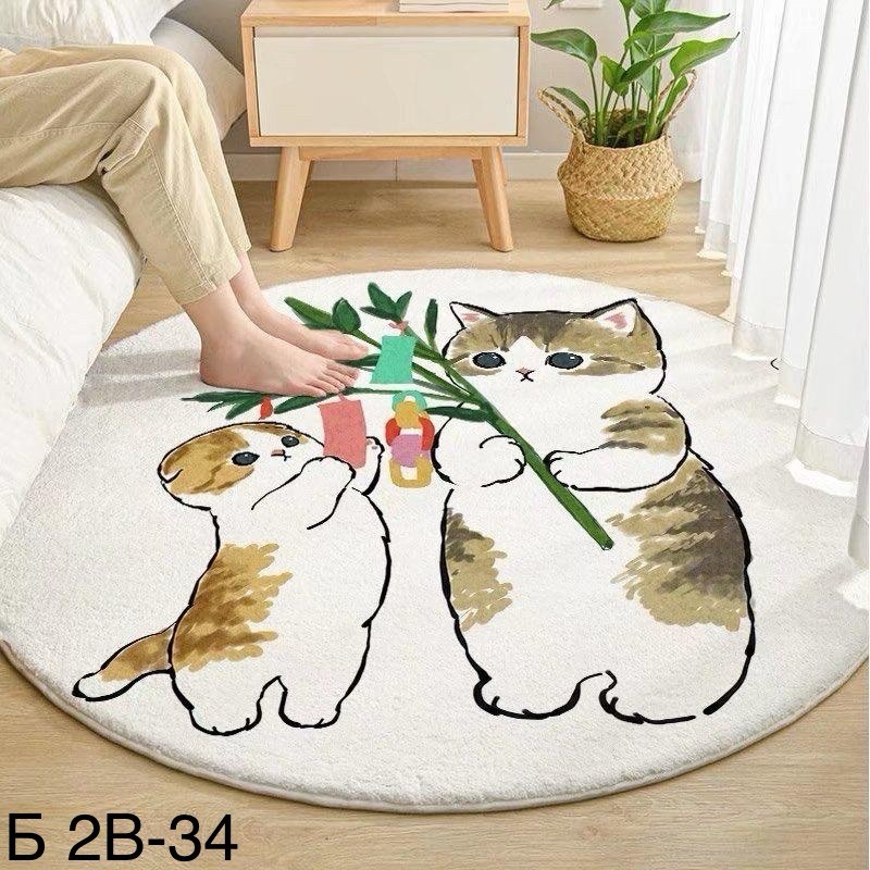 Круглый ковер с мультяшным животным принтом.