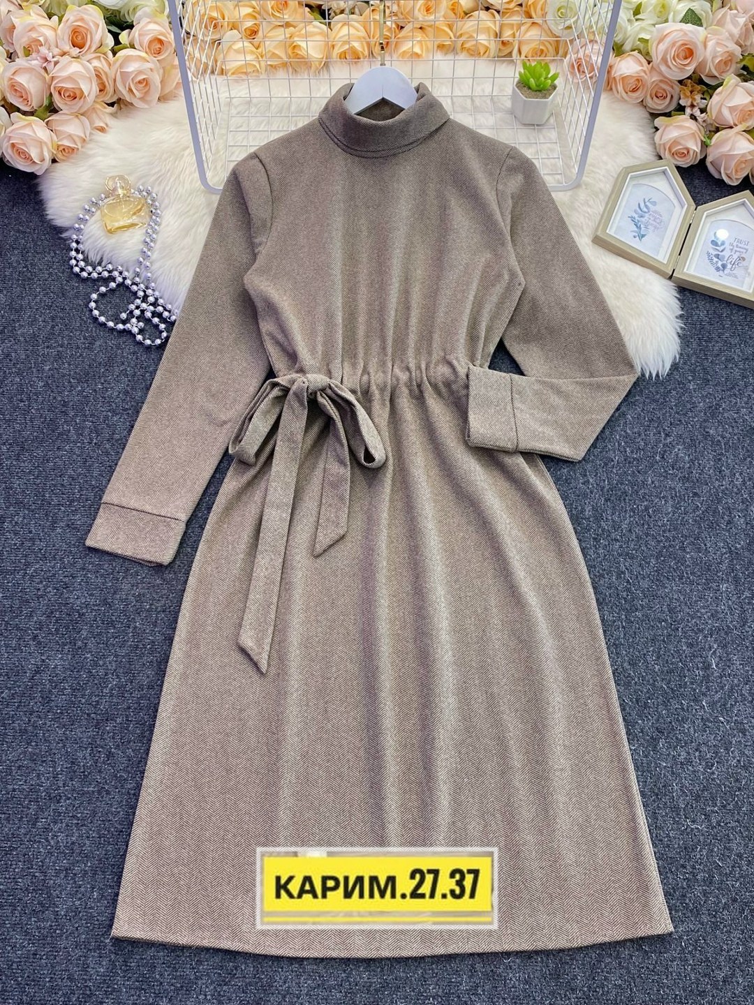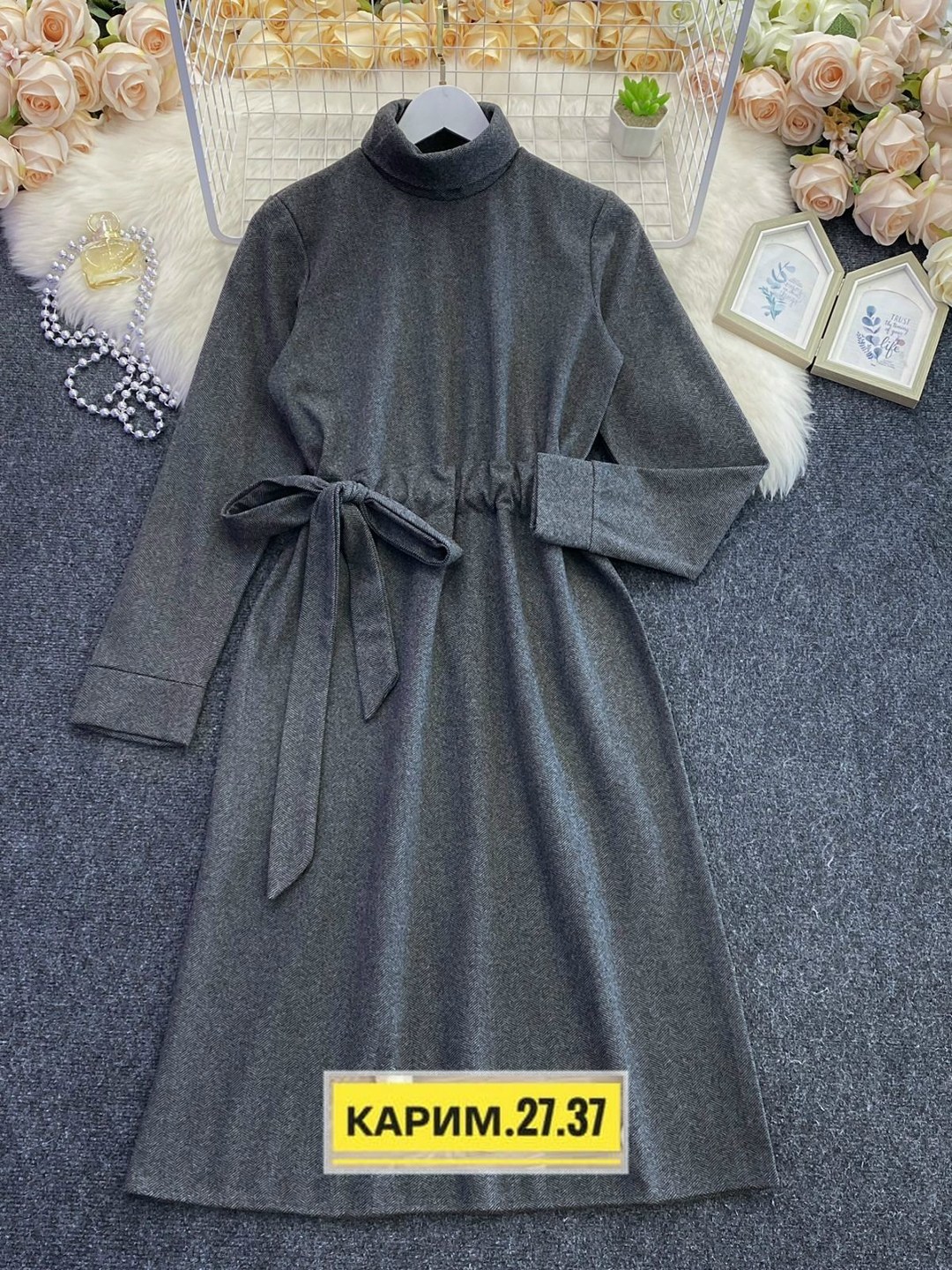 Стильное платье позволит оставаться стильной каждый день С помощью такого уютного предмета гардероба можно создать красивый образ для городских прогулок на выходных на спине затяжной бантик.