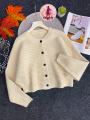 Кофта широкая на пуговицах модного силуэта с цельновязанными рукавами.