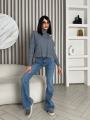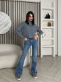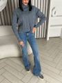 Шикарные джинсы-клш с средней посадкой акцент на идеальные пропорции Оттенок придат образу элегантность.