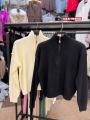 Женский свитер стиля полузамок - элегантный выбор для повседневного гардероба Мягкая пряжа обеспечивает комфорт и тепло, а оригинальный дизайн воротника добавляет образу утонченности и шарма Идеален для прохладных вечеров и осенних прогулок.