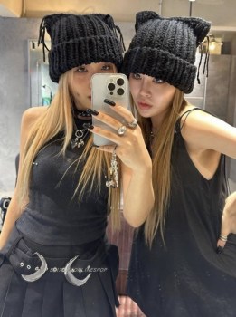 Классные вязаные шапки с ушками