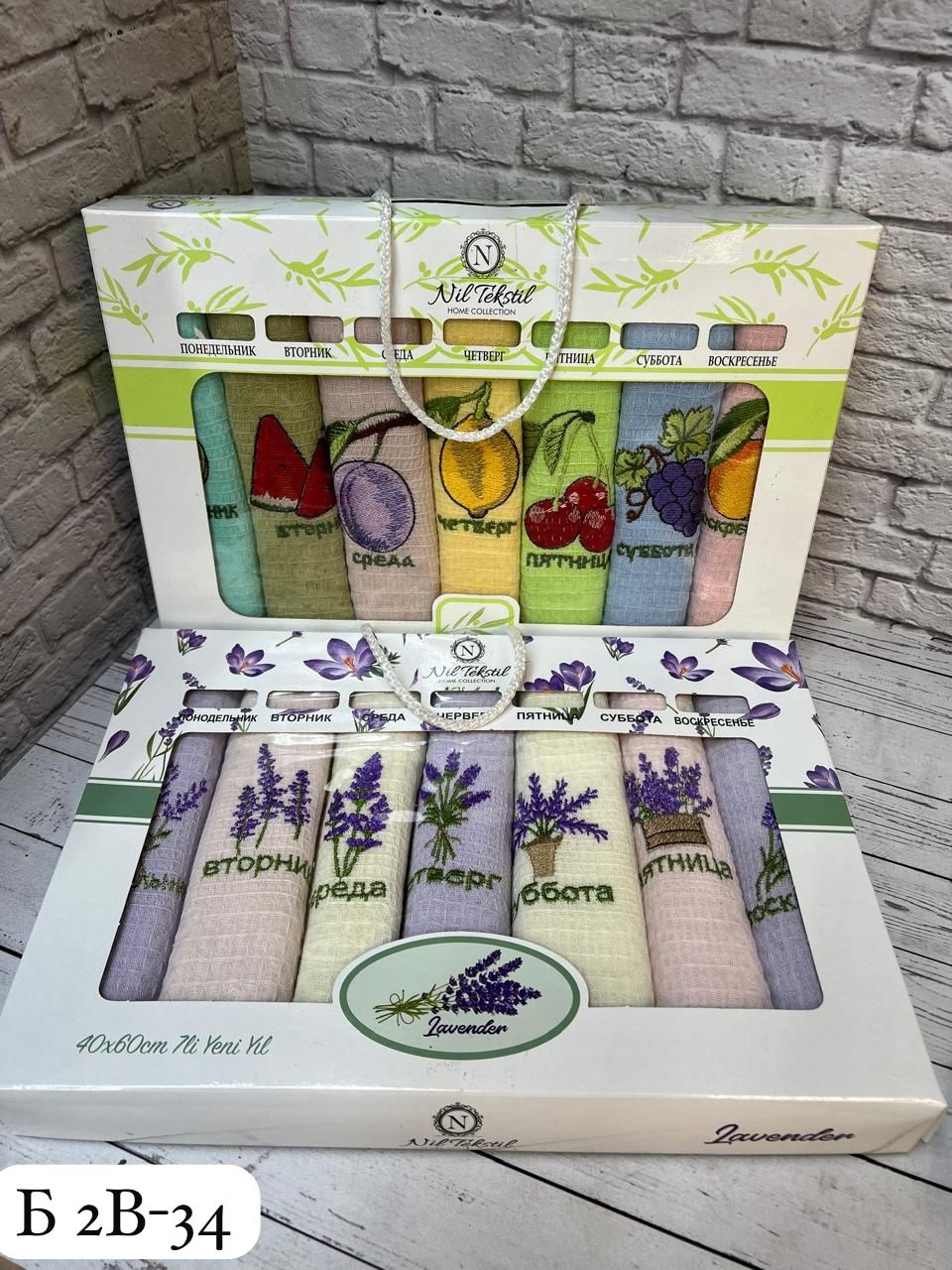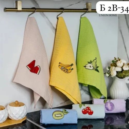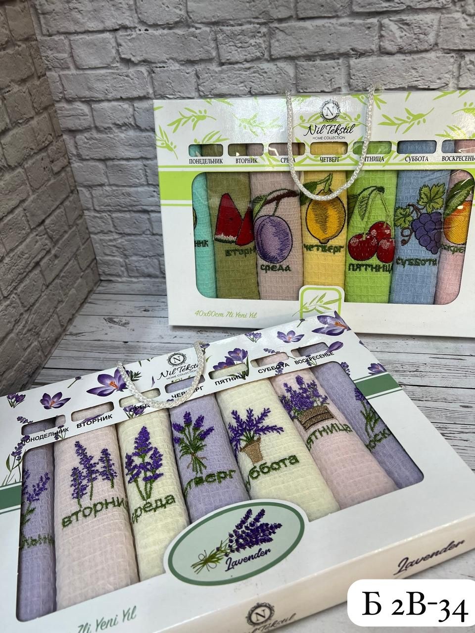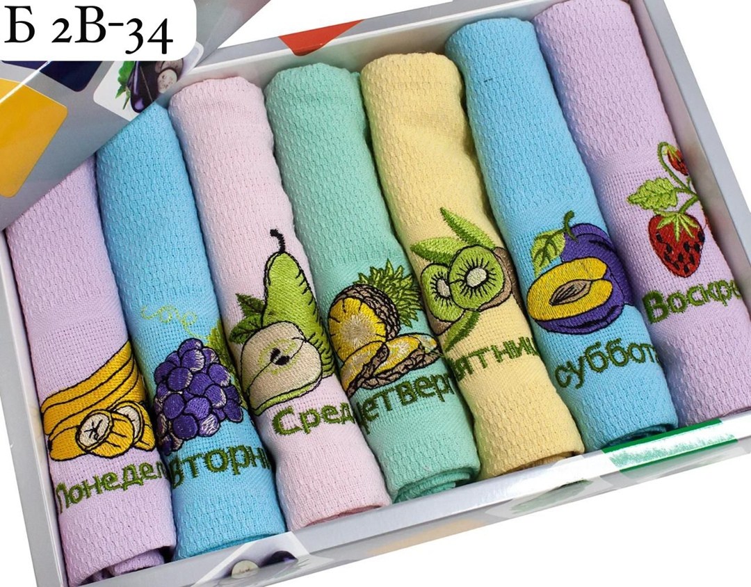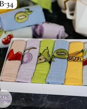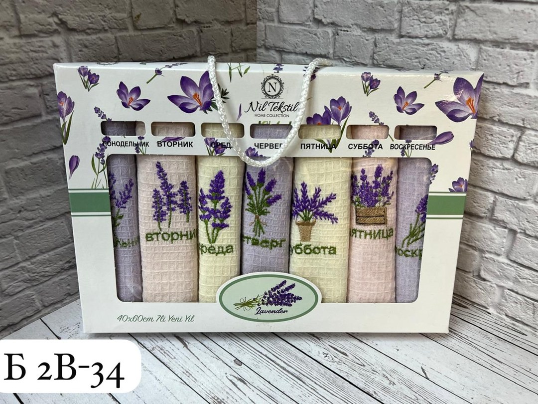 Размером 40х60см с красивой тематической вышивкой фрукты и лаванда упакованных в подарочную коробку Изделия изготовлены из натуральной хлопка Мягкая вафельная ткань отлично впитывает влагу и быстро сохнет.