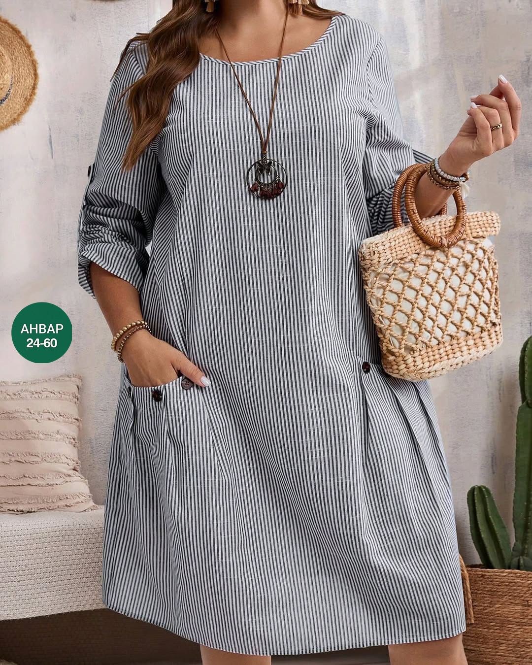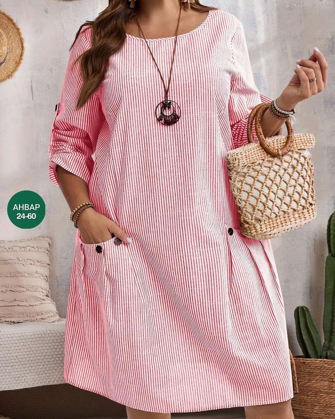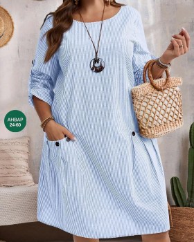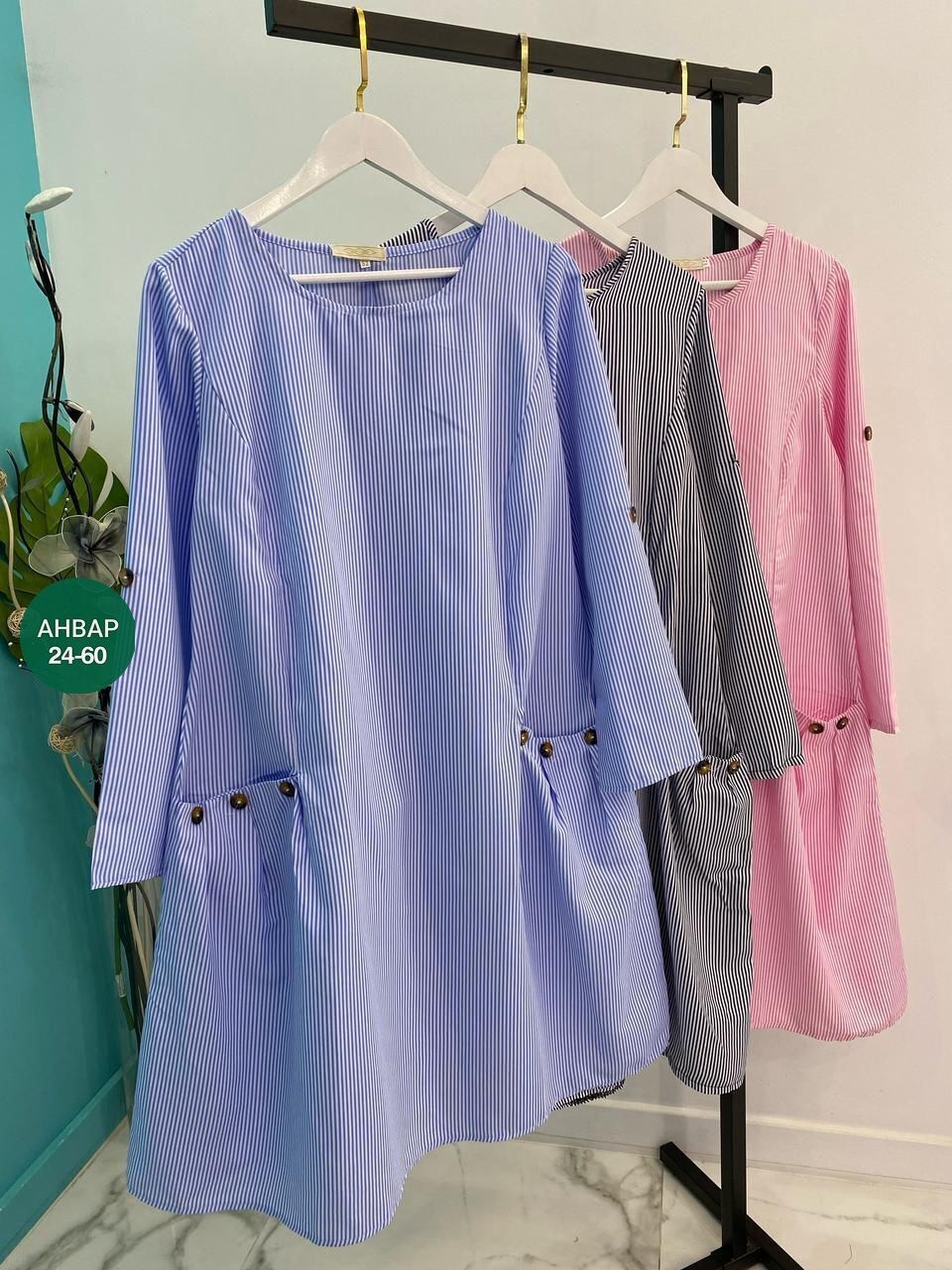 М61....... Модная женская одежда Платья в трех цветах Ткань: х/б полоскаразмеры: 50 52 54 56 58 60цена: 700 рублей.
