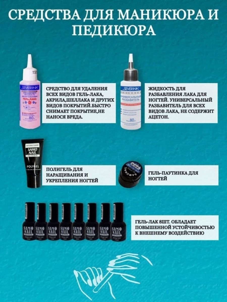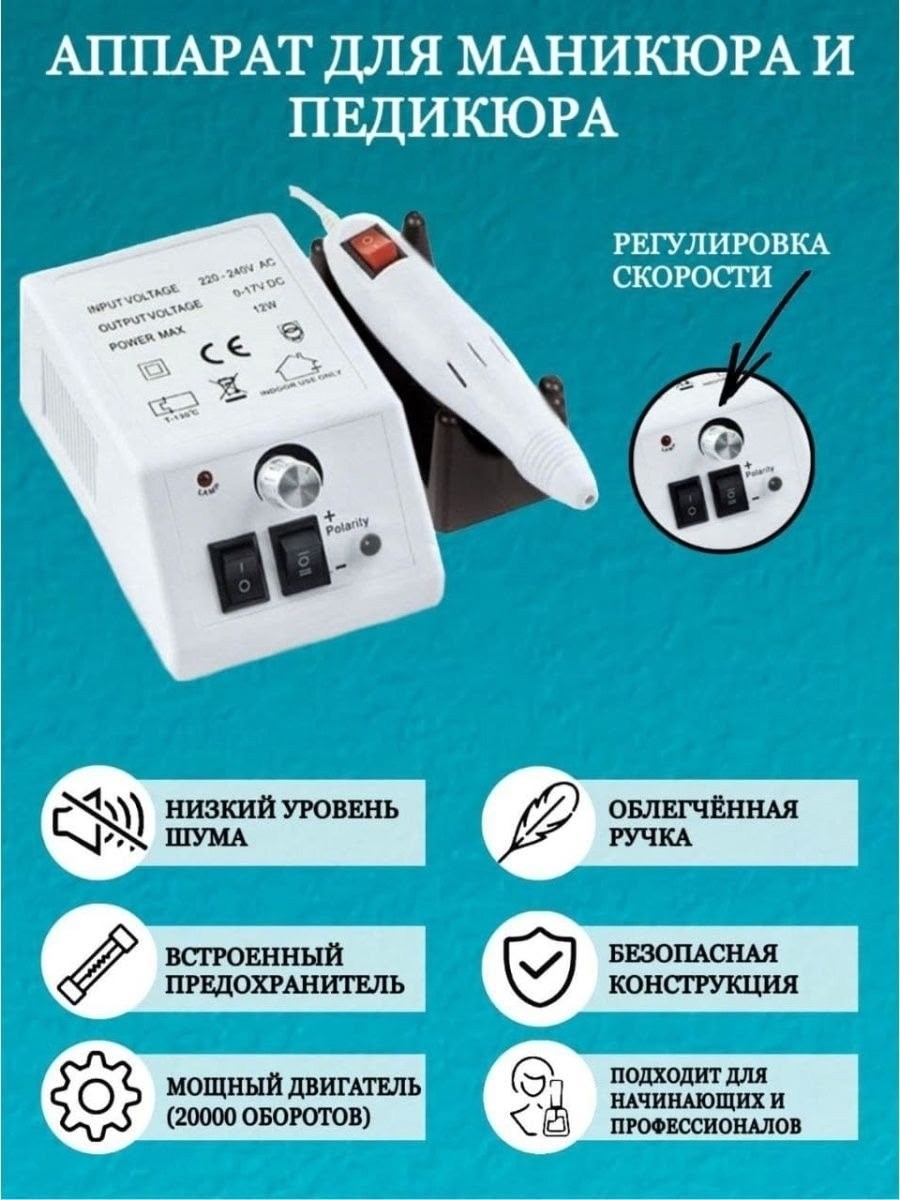 Набор для маникюра и педикюра с лампой и аппаратом для начинающих и более продвинутого мастера Набор состоит из 67 предметов,включает все необходимые инструменты для маникюра и педикюра, с которыми вы уже можете начать делать себе невероятный маникюр и педикюр Мощный аппарат для маникюра с набором фрез в комплекте оснащн регулятором с плавным и мягким переходом и реверсом обратное вращение фрезы Низкий уровень шума,облегчнная ручка,подставка,отсутствие вибрации при выполнении работ Безопасная led лампа для моментальной сушки ногтей, с индикатором времени и защитой от перегревания Гель лаки разных цветов в ассортименте, средство для снятия гель лака,акрила и и других видов покрытий,разбавитель универсальный, щеточка для чистки, палочки апельсиновые, безворсовые салфетки, пилочки для ногтей, баф, набор страз для дизайна, гель-паутинка, стекловолокно для наращивания ногтей, масло для кутикул и многое другое Набор для маникюра и педикюра можно использовать для домашнего и профессионального маникюра.