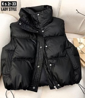 Стильная женская жилетка из фабричной эко-кожи с наполнителем из холлофайбера Идеальный выбор для межсезонья, когда необходима легкая, но теплая одежда.