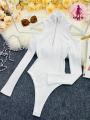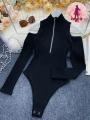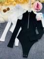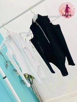 Боди с открытыми плечами и молнией для регулировки образа.
