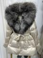 Пуховик-тренч с натуральным мехом чернобурки, длина 75 см, утеплен пухом, мех съемный.