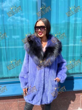 Шубка из меха европейской норки, капюшон из меха чернобурки, длина 90 см, модель баллон.