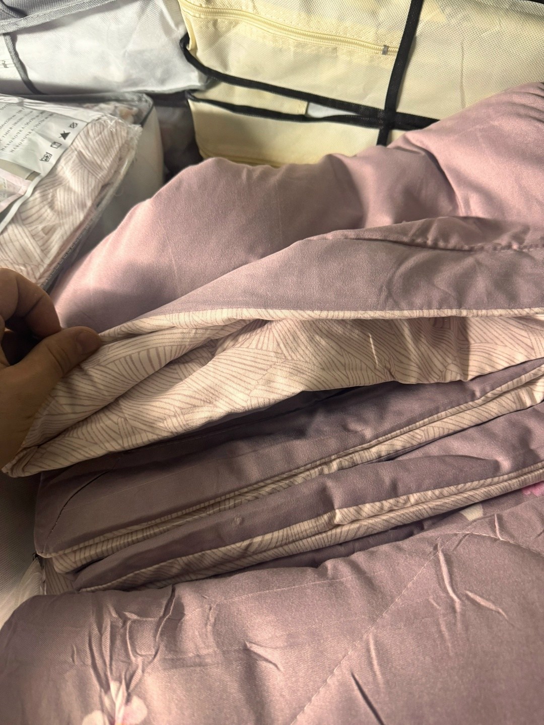 Одеяло сразу готово к использованию - пододеяльник не нужен Можно стирать в стиральной машинке при 40.