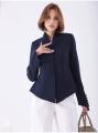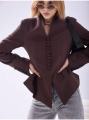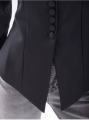 Стильный приталенный пиджак с длинными рукавами и укороченый воротник стойка необычный дизайн подчеркнет изысканность выбора.