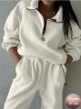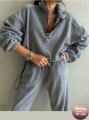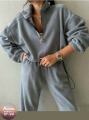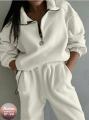 Женская двойка на флисе: толстовка с воротником на молнии и джоггеры дарит ощущение защищенности, создавая эффектный элегантный кэжуал образ.