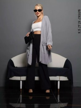 Кардиган длинный женский вязаный с карманами оверсайз Крой - прямой силуэт Рукава летучая мышь.