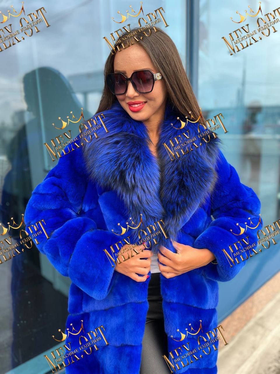 Шубка из меха бобрика, воротник из меха чернобурки, паркетная раскладка.