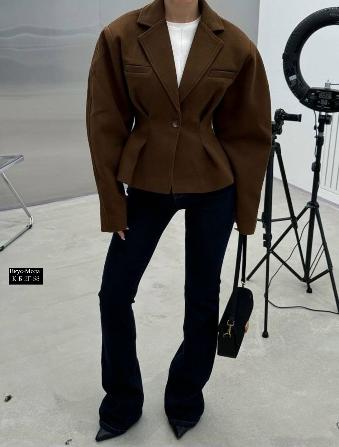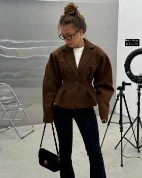 Пиджак-пальто укароченый и приталенный на осень.