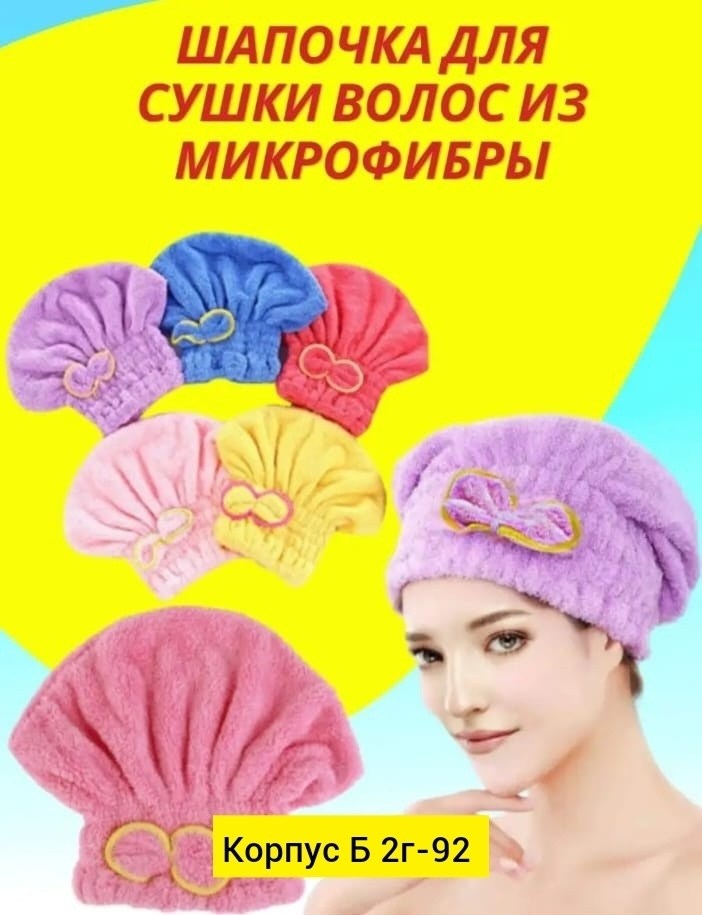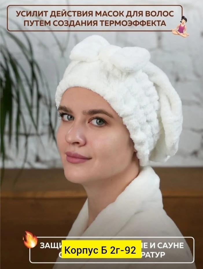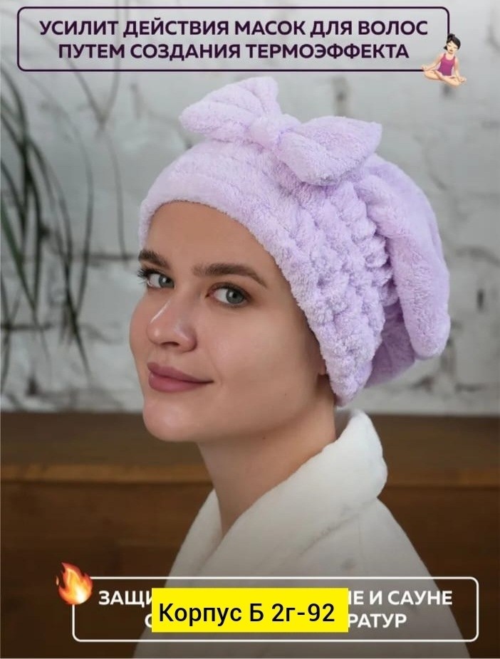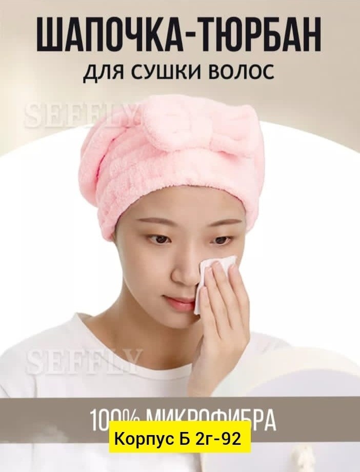Головной убор, чалма для сушки волос из микрофибры.