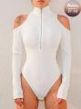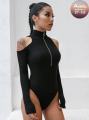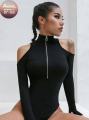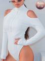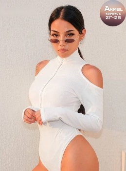 Боди-джемпер с короткой молнией и открытыми плечами стильный и утонченный, приглашает к экспериментам с образом, от классики до дерзкого стиля, подчеркивая вашу изящную красоту.