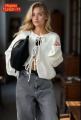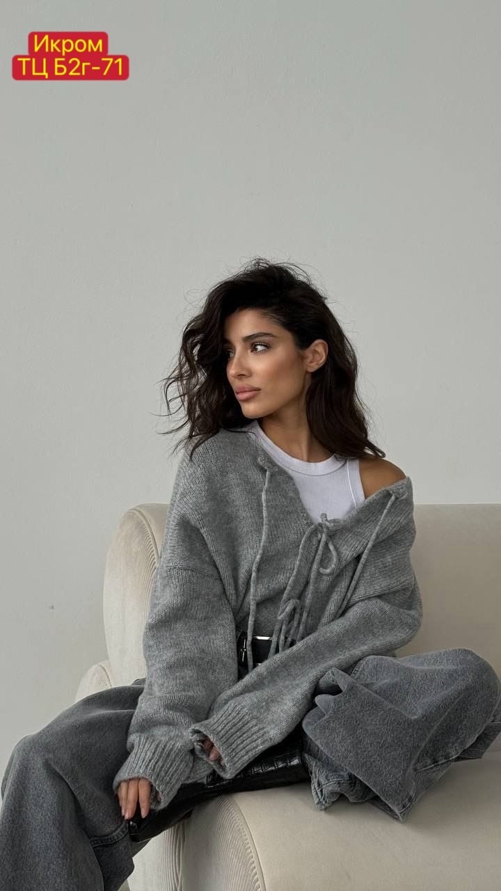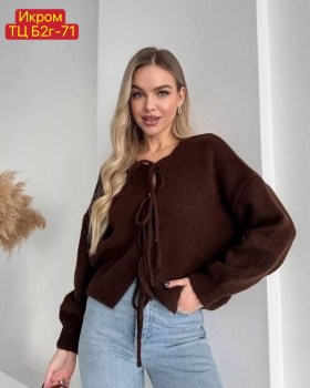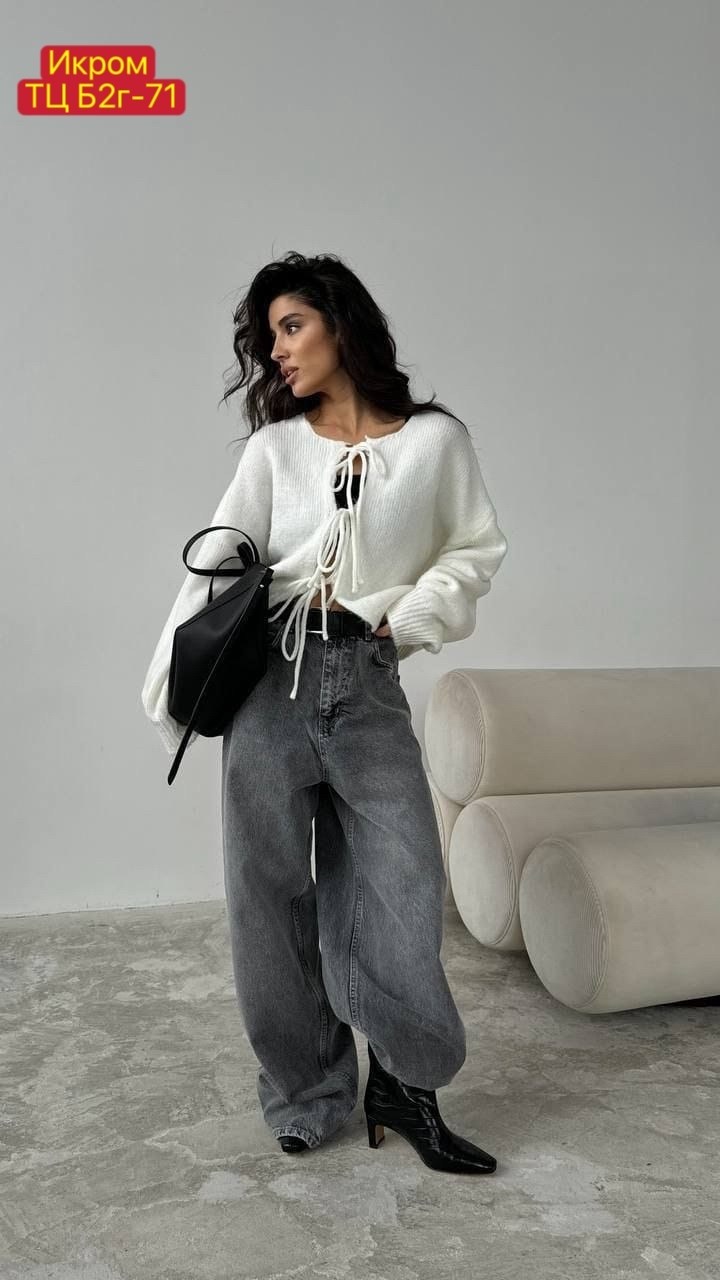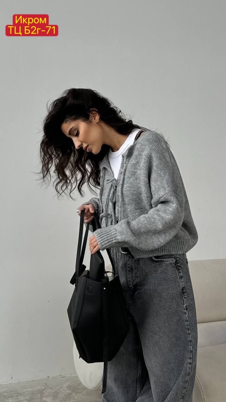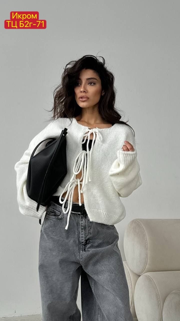 Стильный укороченный кардиган на завязках универсальный вариант для стильных и уютных образов Подойдт для сочетания с джинсами, юбками и платьями.