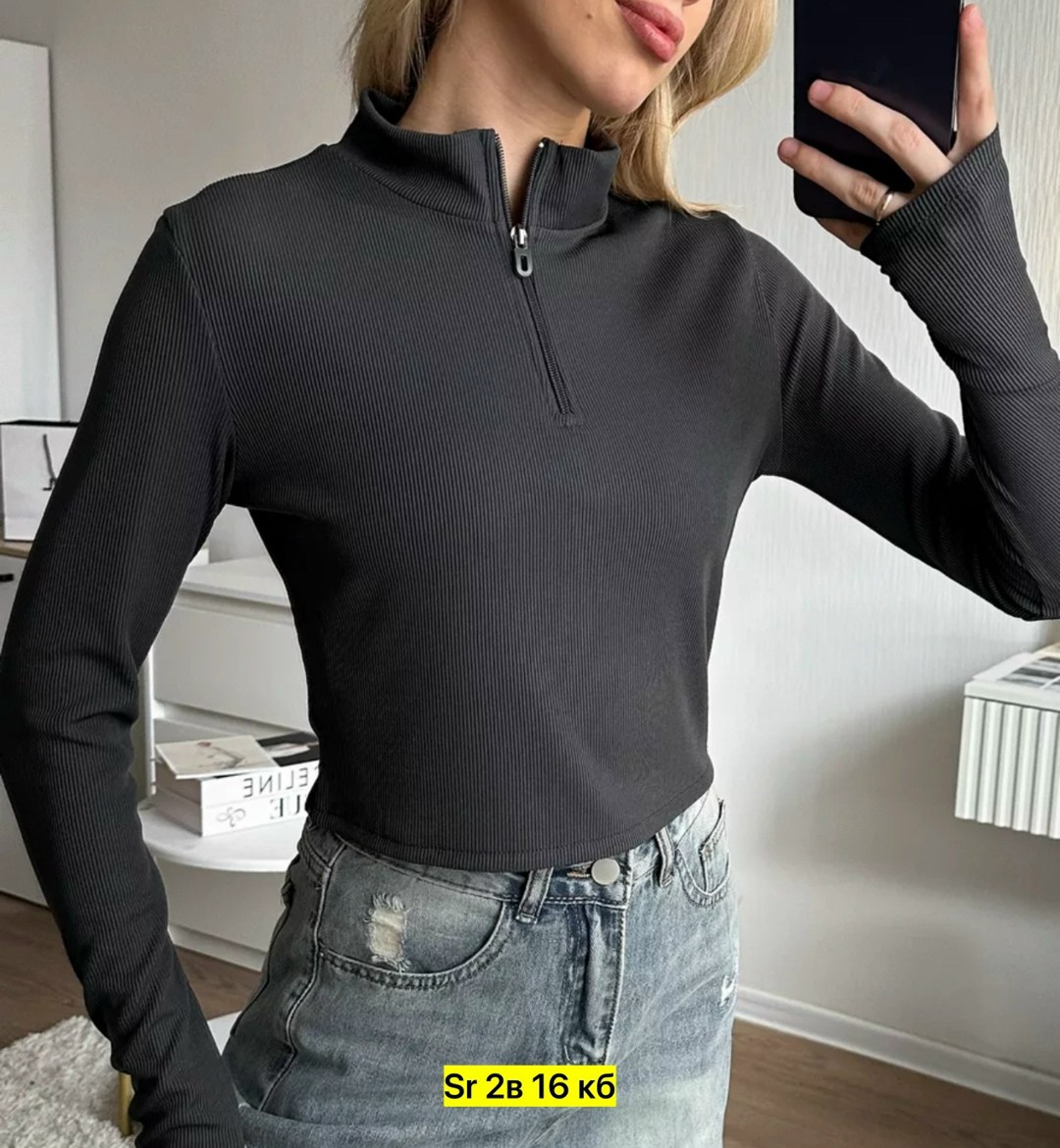 Укрась свой гардероб стильным и модным женским топом в белом и графит, черном цвете Этот облегающий топ с длинными рукавами, имеет укороченную длину, что позволяет подчеркнуть талию и создавать эффектный силуэт.