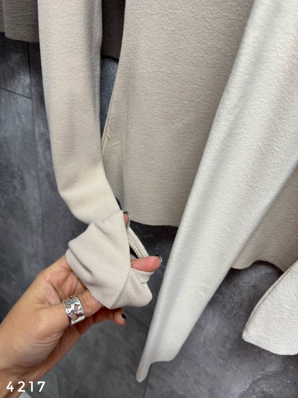 Лонгслив из мягкого теплого трикотажа, рукав с прорезью для большого пальца , необработанные края Арт 4217 Длина 52см / пог 35см Тянется.
