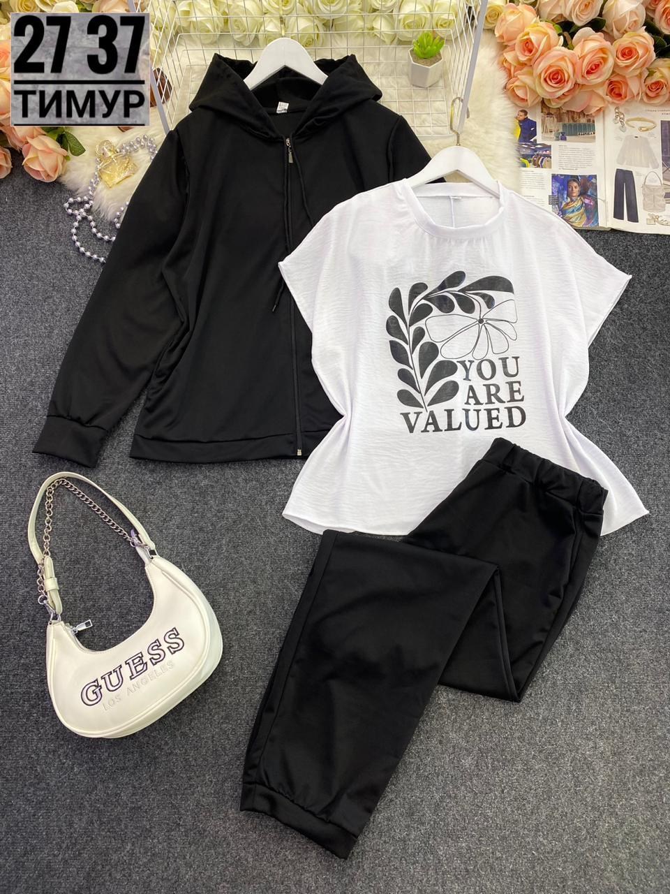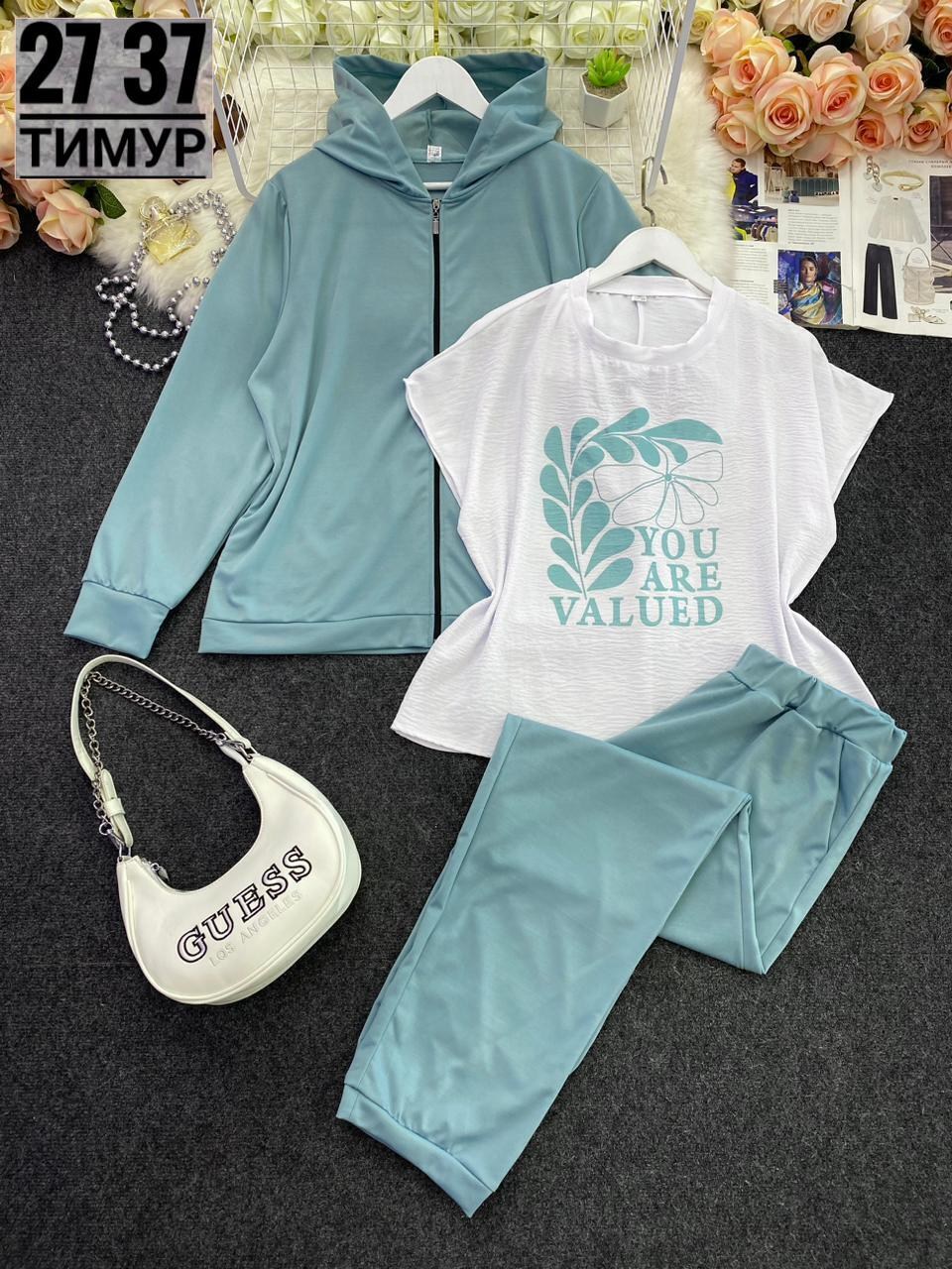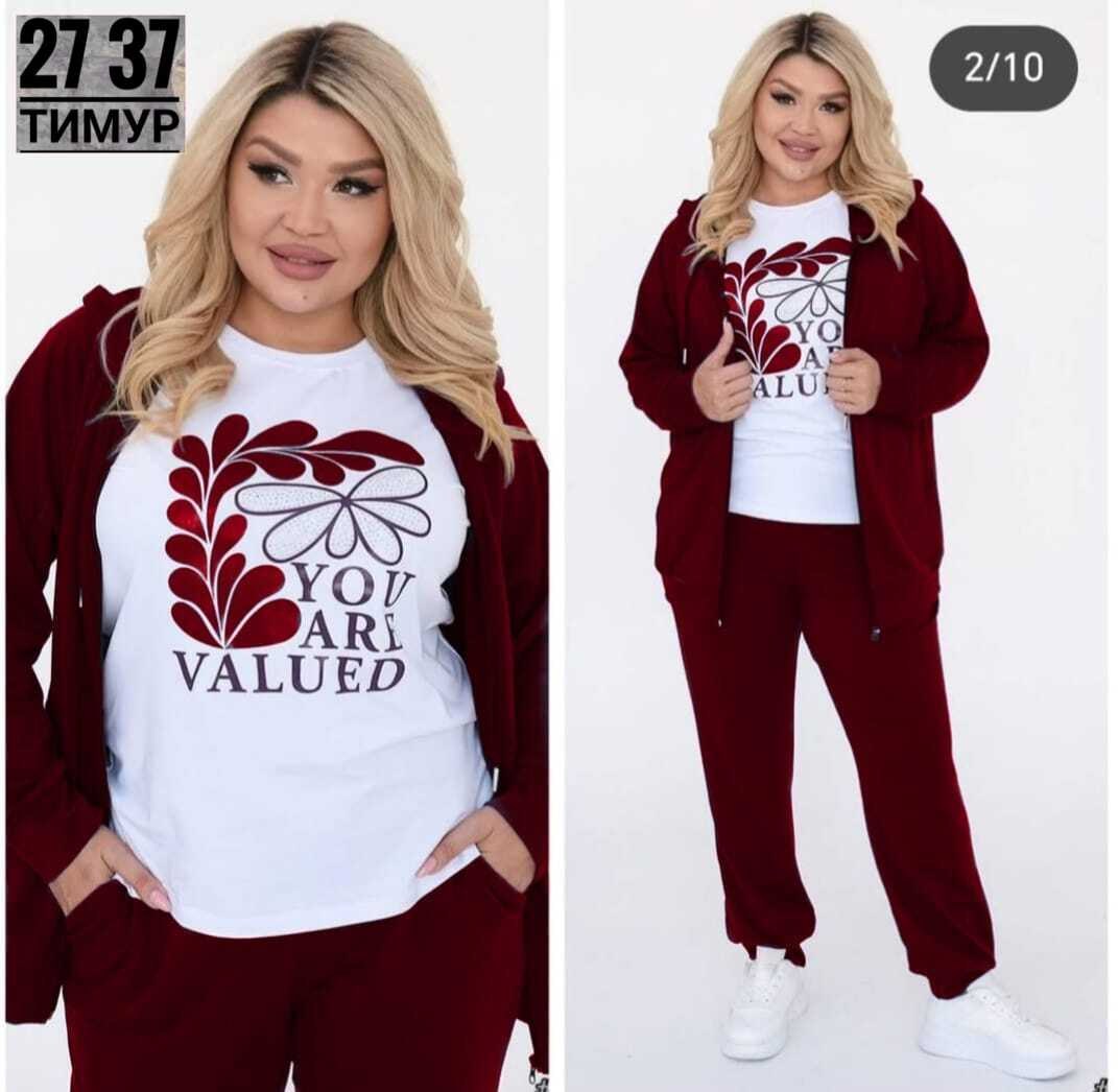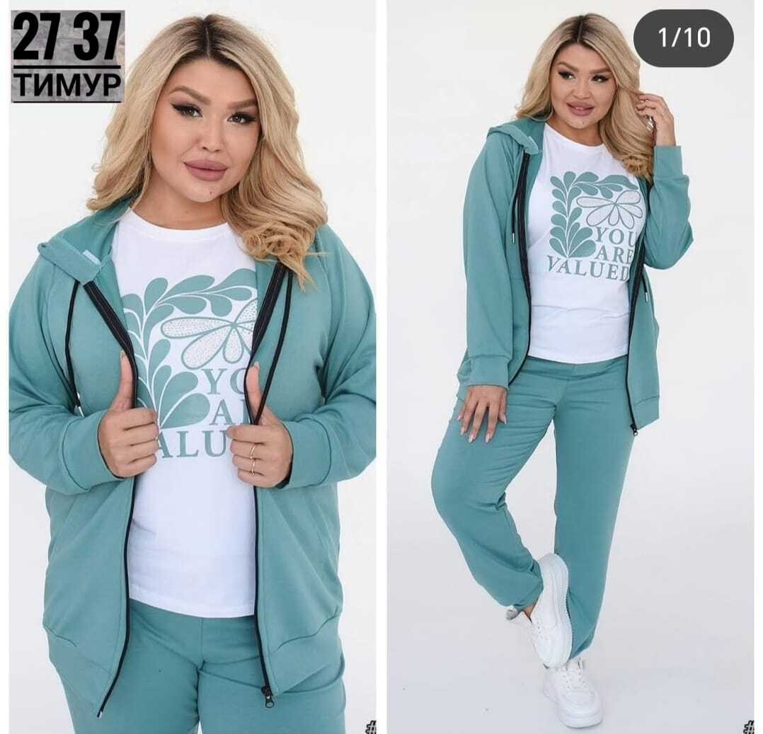 Новинкакостюм тройка ткань трикотажфутболка лайтразмер 54 56 58 60 62 64, цвет без выбора Цена 900 рублей.
