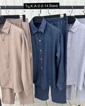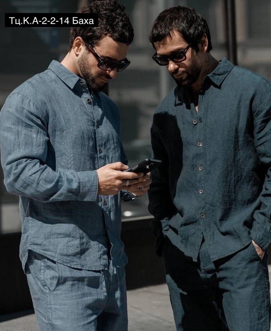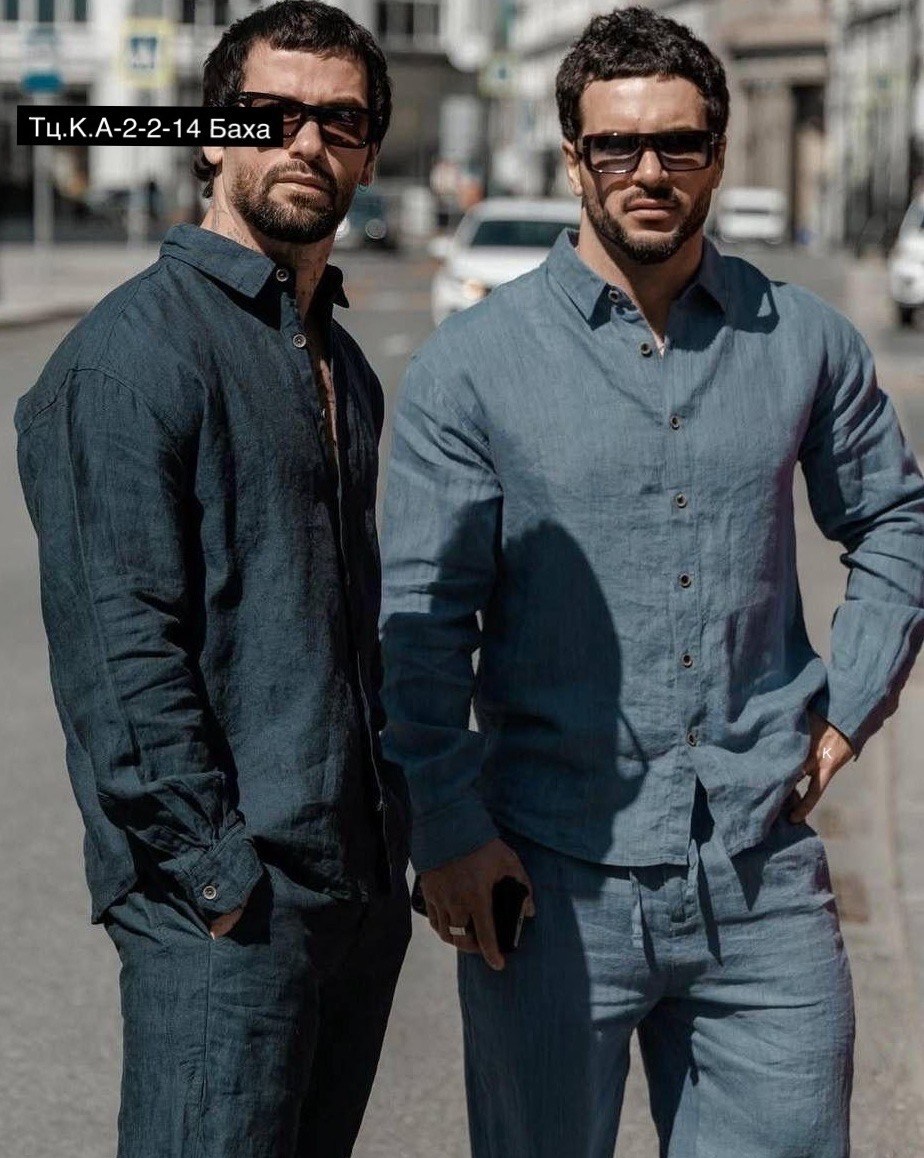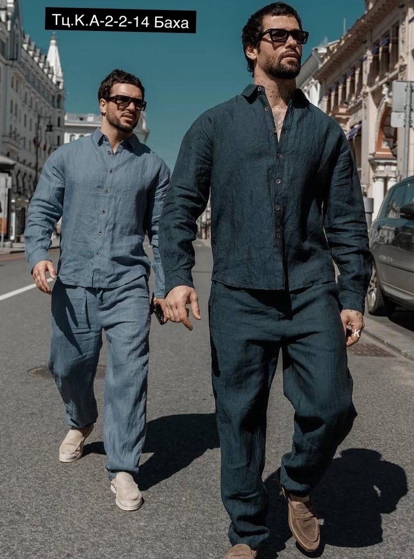 Мужских образов из натурального льна: рубашка и брюки в единой цветовой гамме.