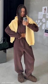 Костюм двойка: олимпийка на молнии с капюшоном (вышивка на капюшоне) и кулиской по подолу брюки на резинке сверху и кулиска снизу Утепленные (велюр плюш, очень мягкие и приятные к телу) Длина по внешнему шагу 100см / по внутреннему 65см Длина от плеча 46см / пог 67см Арт 4215.