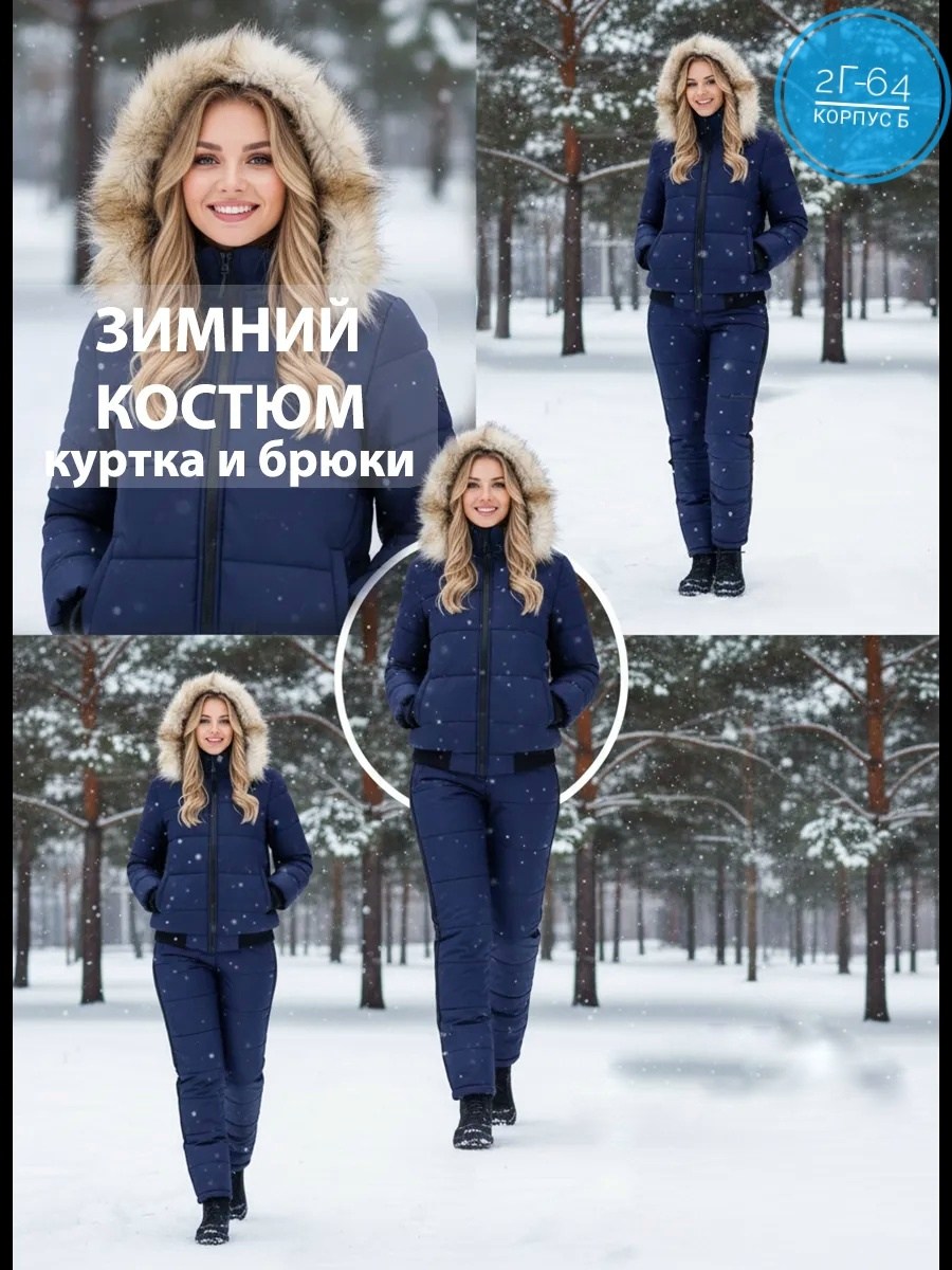 Костюм зимний женский костюм тиeпли Это самый популярный вид верхней одежды для холодного времени года Ткань - холлофайбер, который обеспечивает комфортную температуру от -10 до -30 градусов.