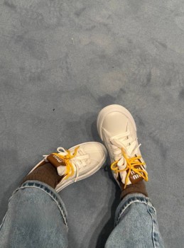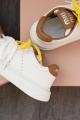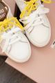 Белый цвет верха, как чистое полотно, готовое засиять вашей индивидуальностью Жлтые шнурки - яркие акценты.