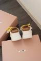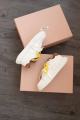 Кроссовки miu miu белые кожаные с желтым шнурком.