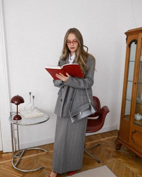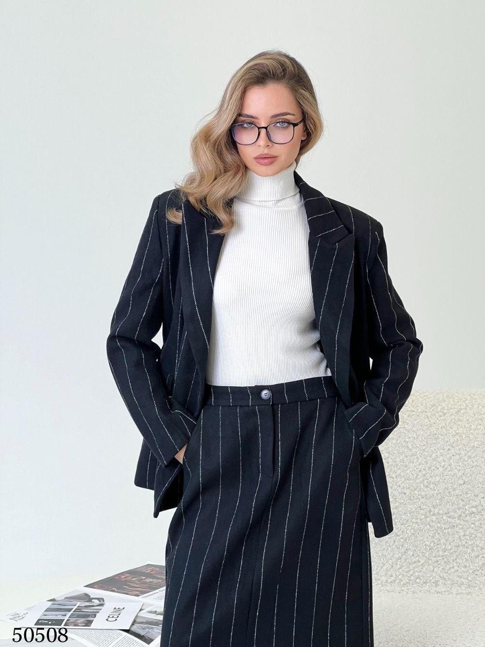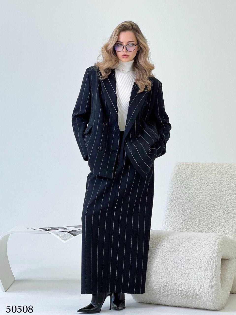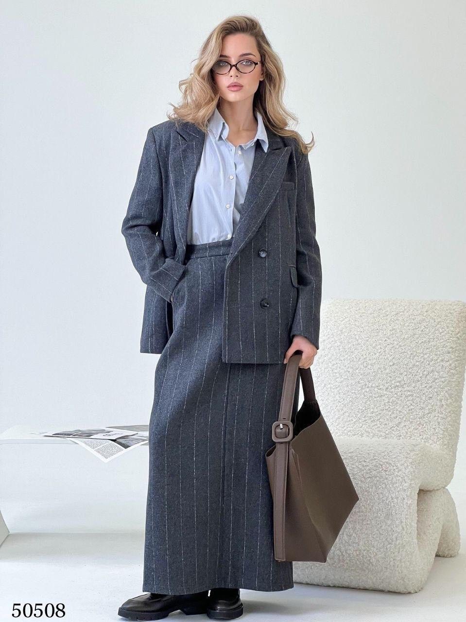 Классический вариант теплого костюма из свободного пиджака и юбки Актуальный вариант этой осени.