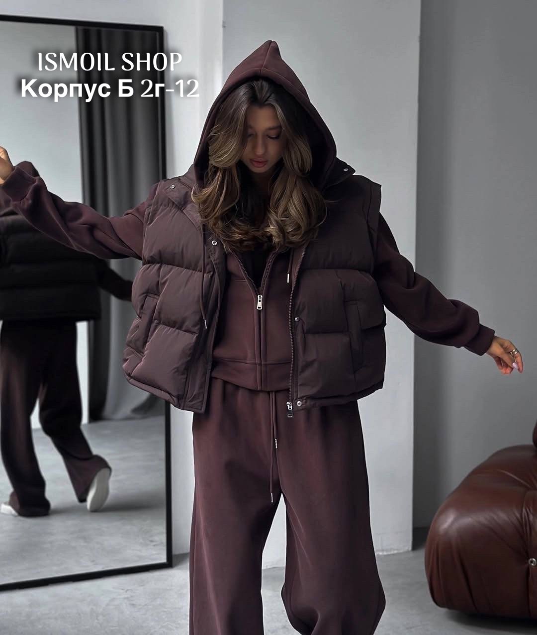- ткань: костюмный футер трехнитка жилетка плащевка холофайбер.