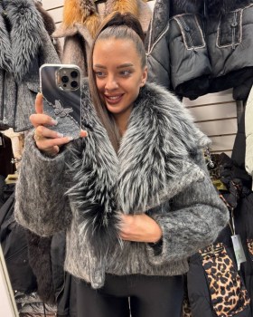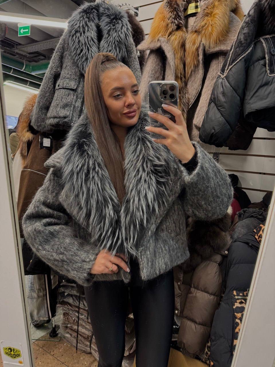 Подчеркните свою изысканность с этим стильным жакетом Мягкая, фактурная ткань в сочетании с роскошным меховым воротником создают неповторимый образ,который привлечет восхищенные взгляды.