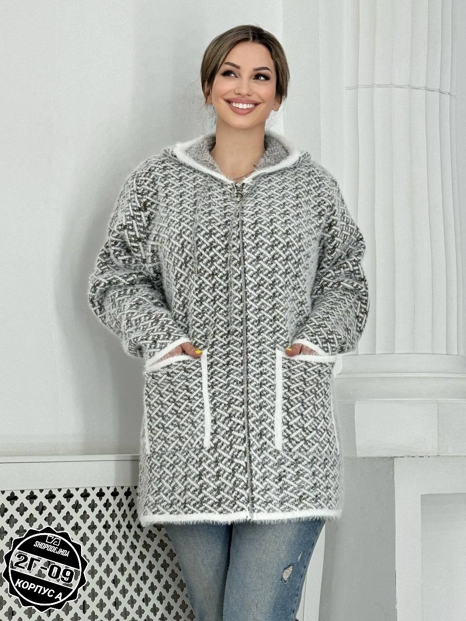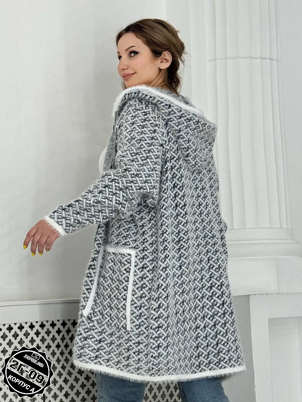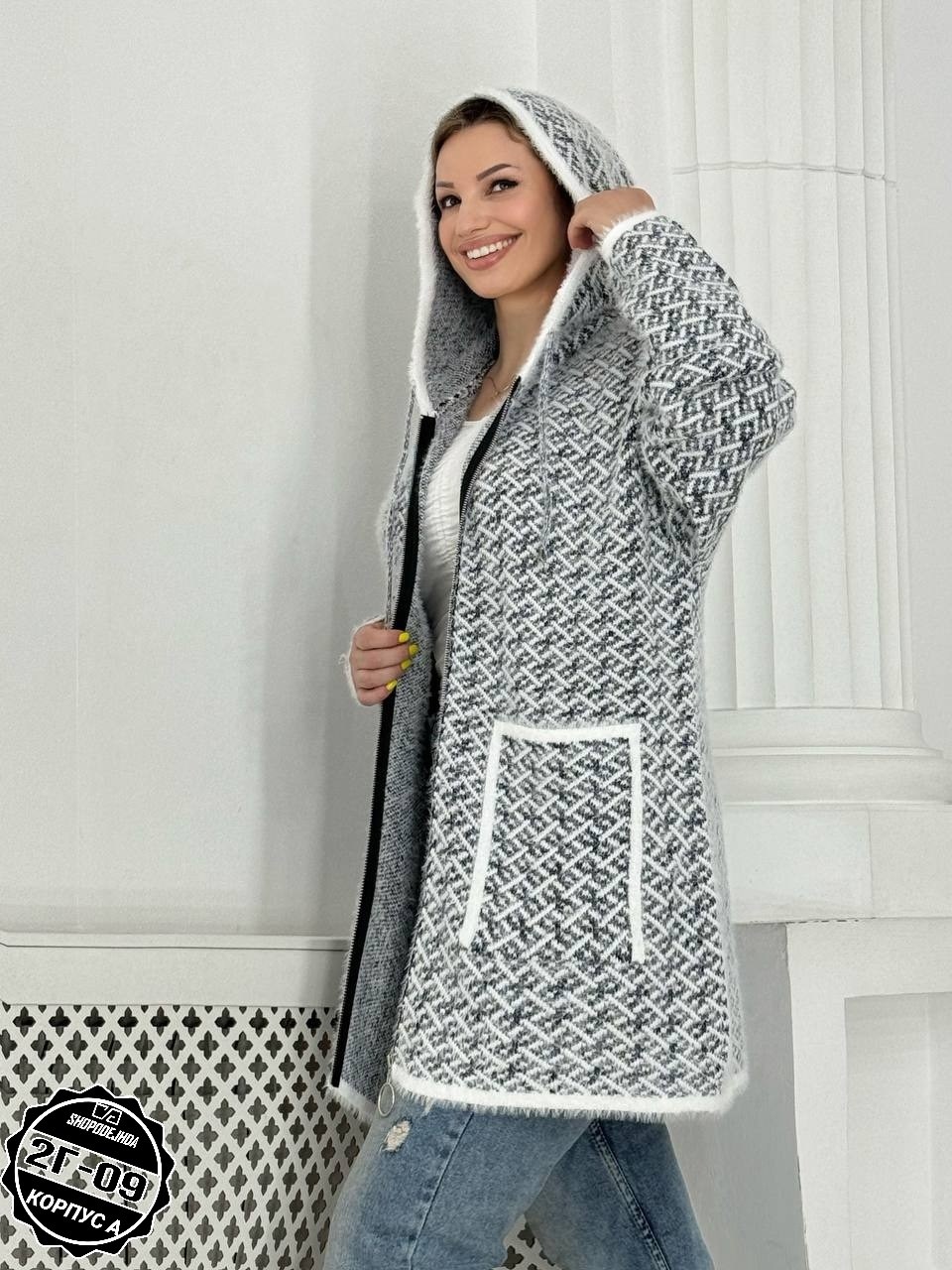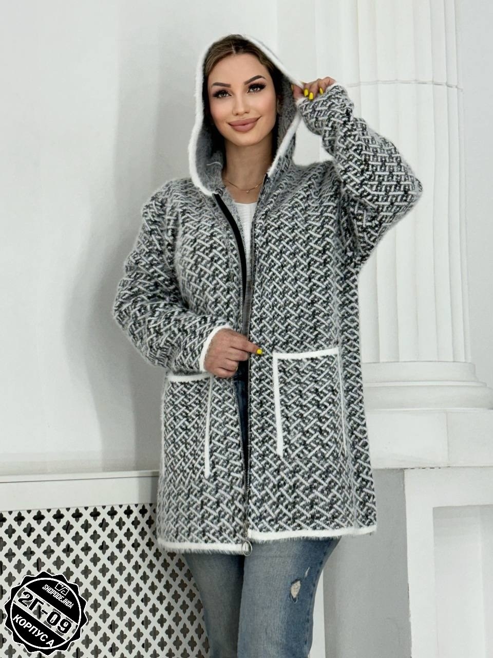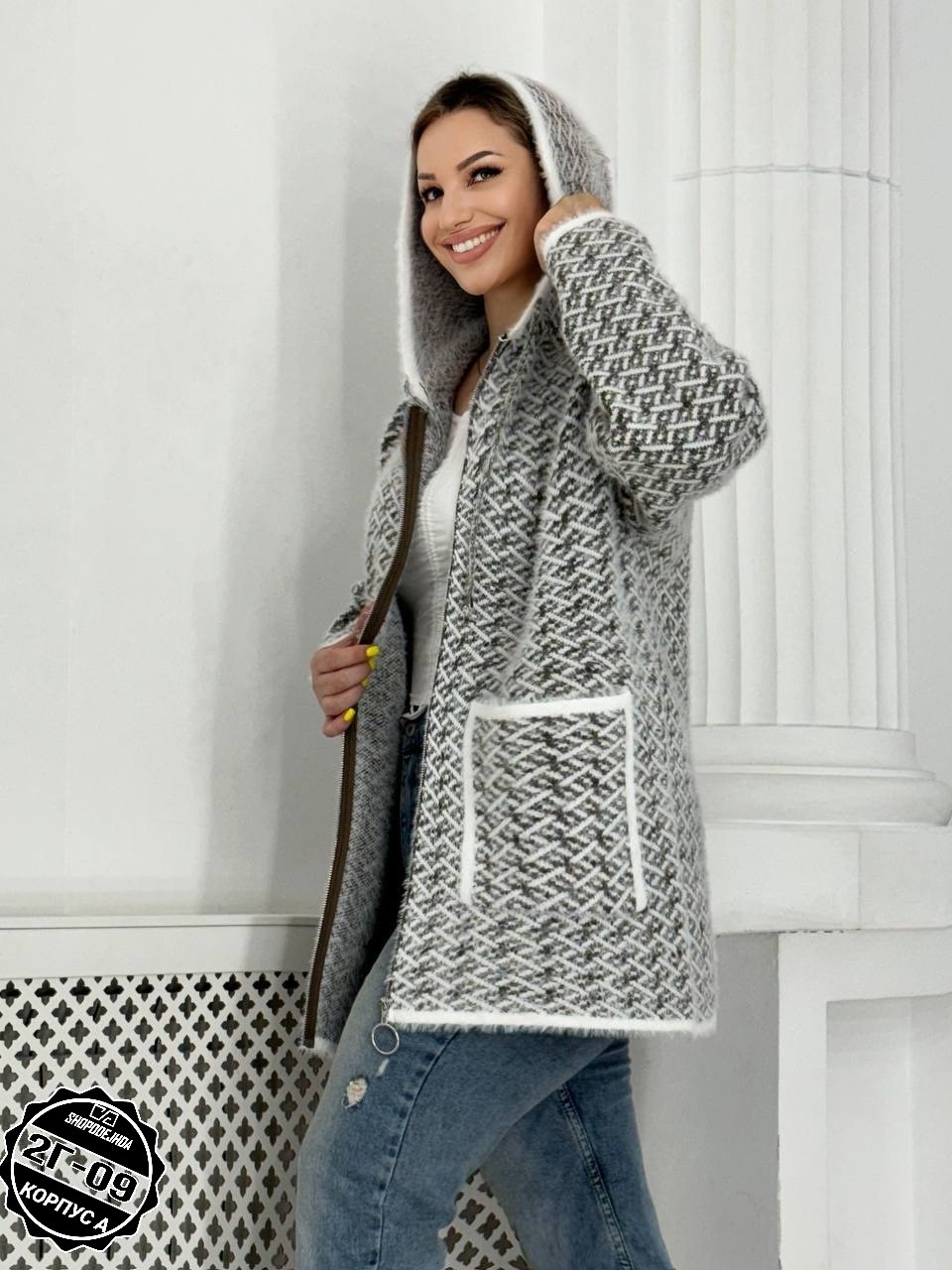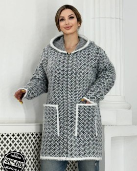 Кардиган удлиненный альпака, травка с капюшоном.