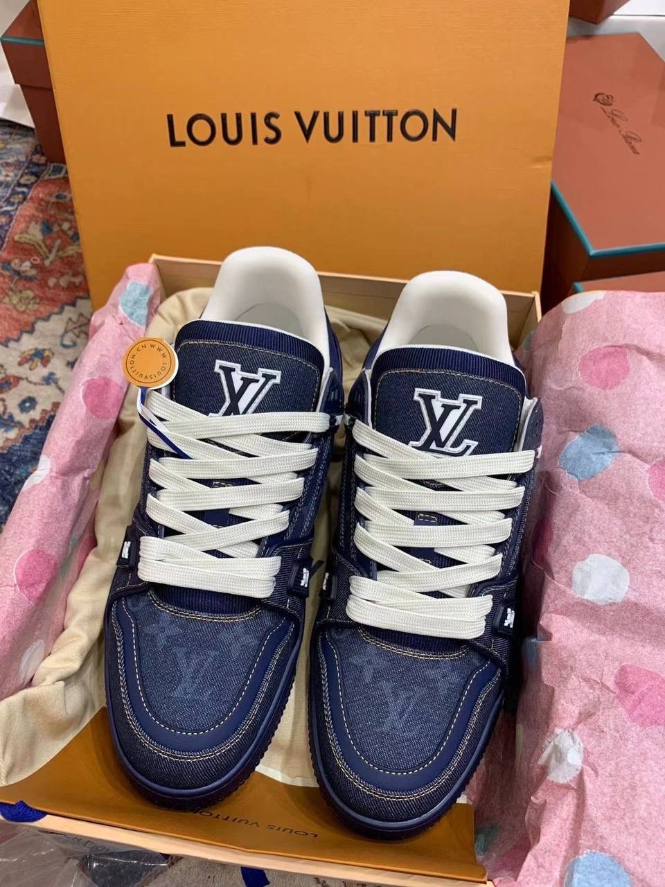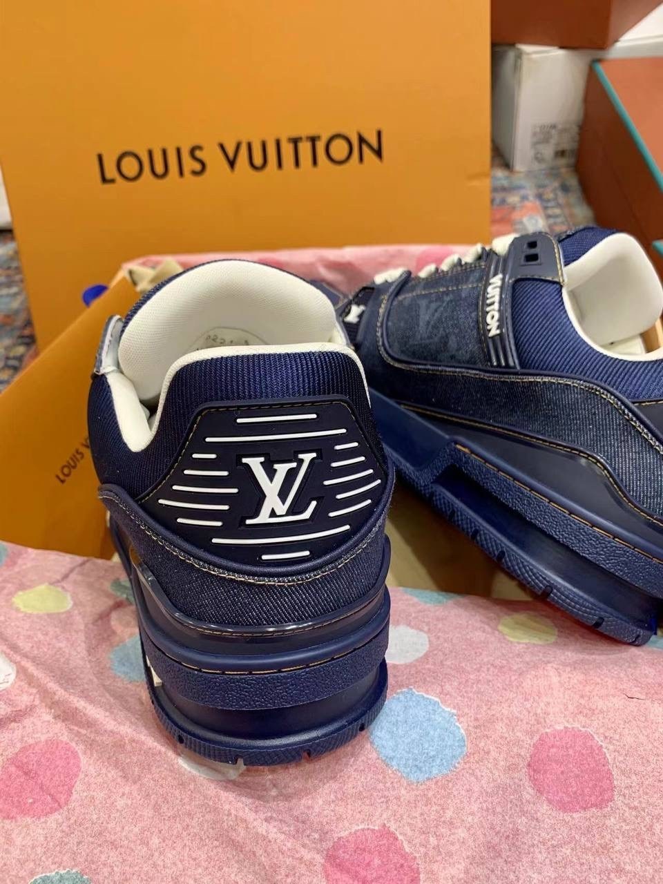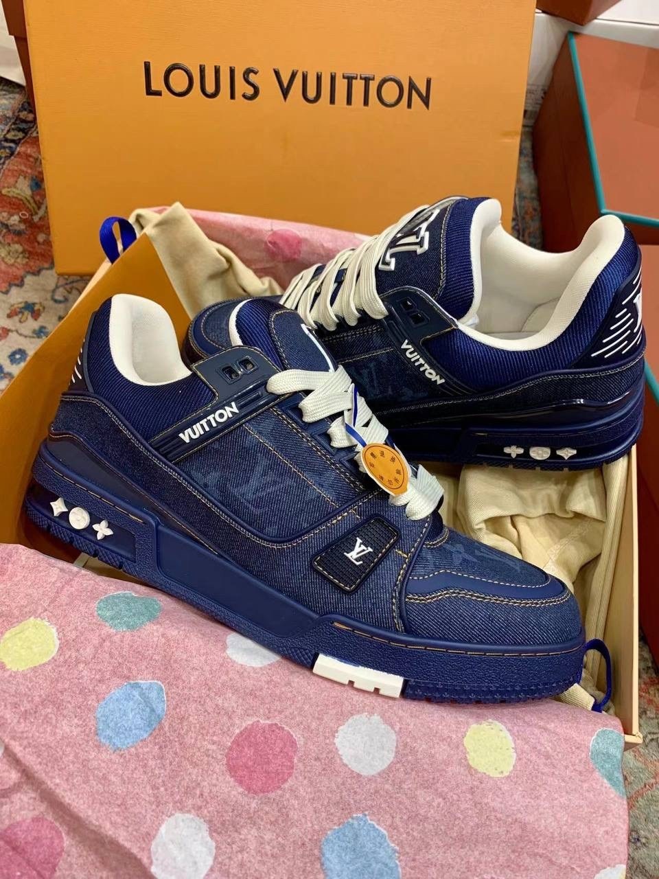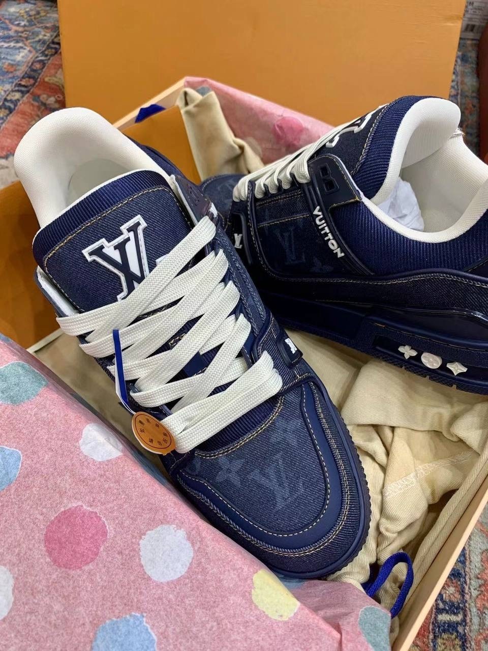 Эти кроссовки триумф денима, где каждая нить монограммы lv повествует о вашем безупречном вкусе.
