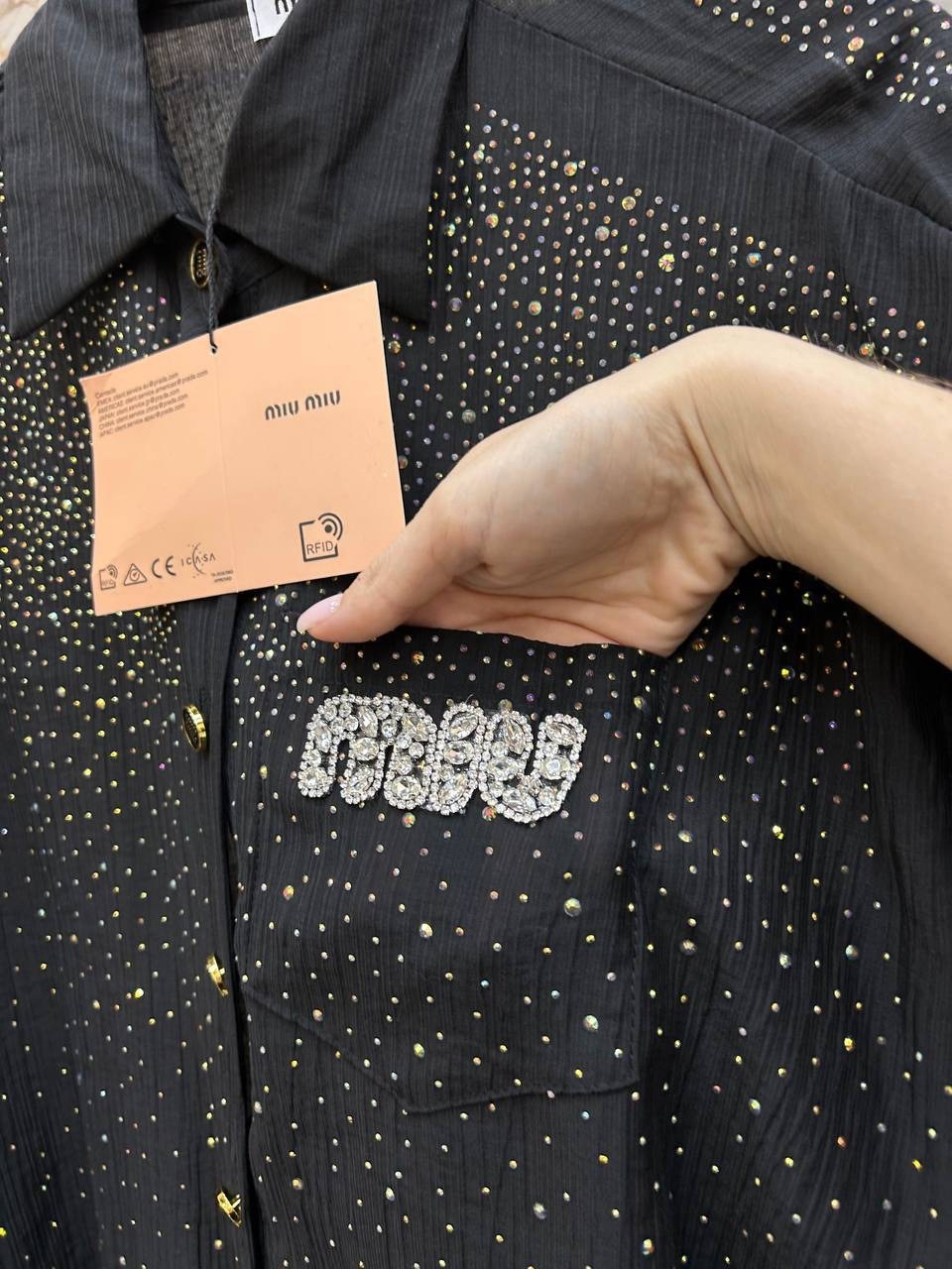 Легкая рубашка со стразами