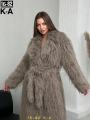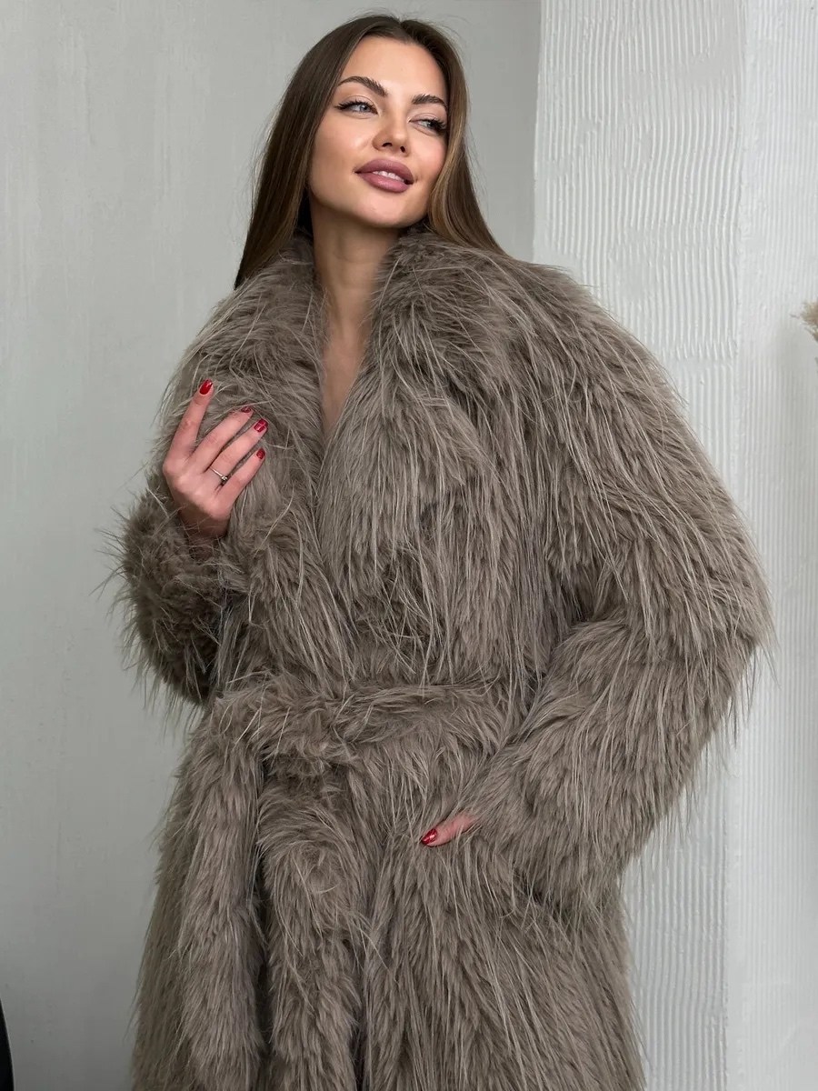 Экошуба представляет собой стильное пальто с удлиненным, идеально подходящее для осеннего и весеннего и зимнего сезонов Модель выполнена из качественного экомеха, имитирующего шерсть страуса, что придает изделию оригинальный внешний вид и ощущение мягкости.
