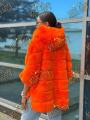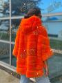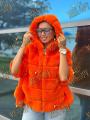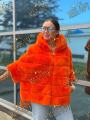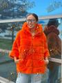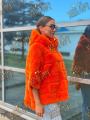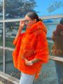 Пончо шубка из натурального меха бобрика с капюшоном, длина 70 см.