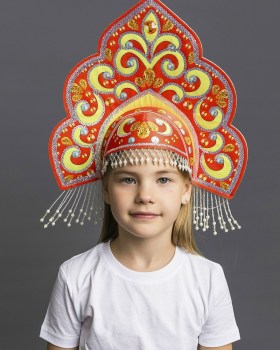 1116 к-24 кокошник русская красавица красный.