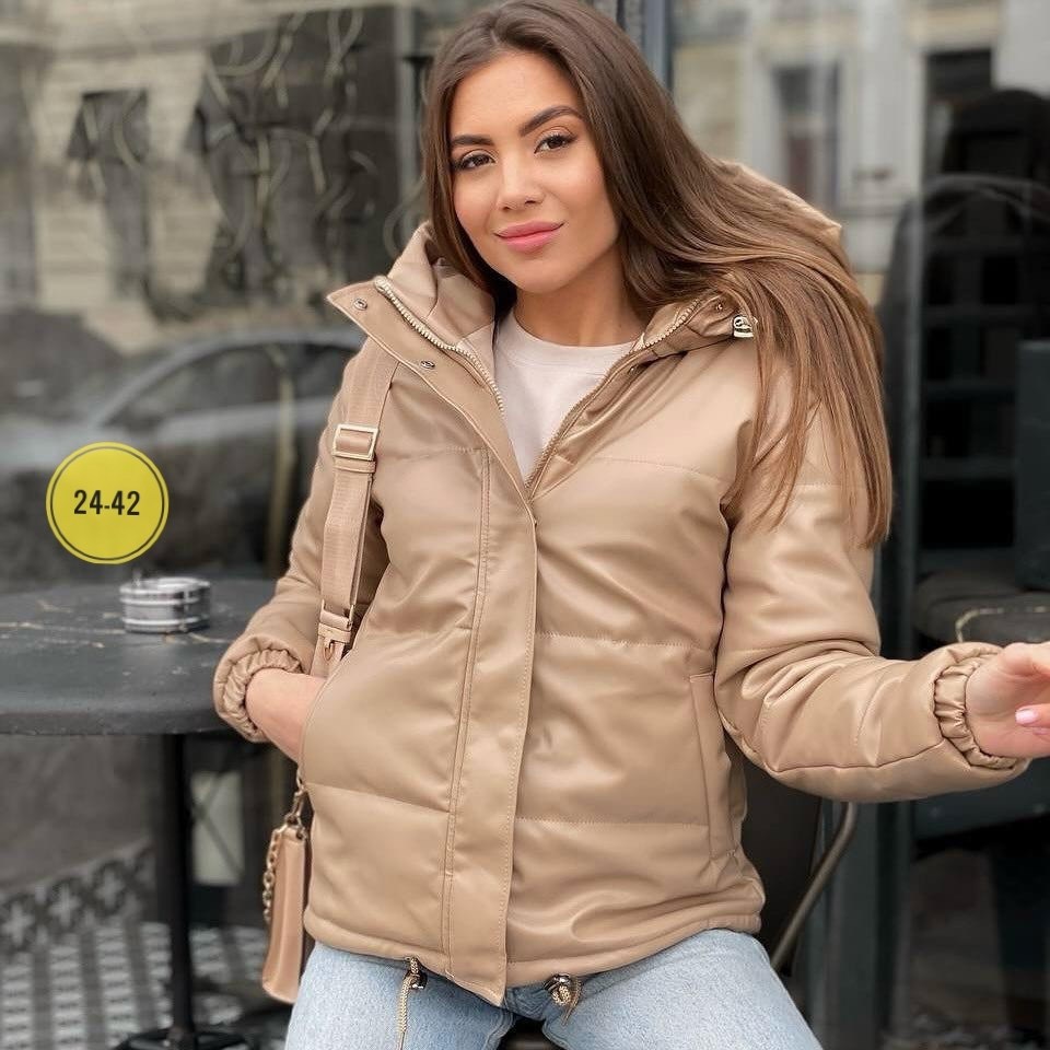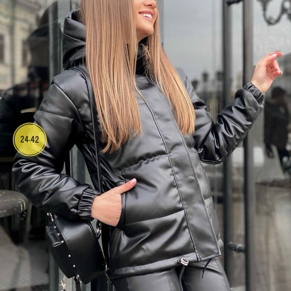 Куртка кожаная короткая-идеальный выбор для холодной погоды Утеплнная холлофайбером, она обеспечивает тепло и комфорт.