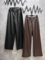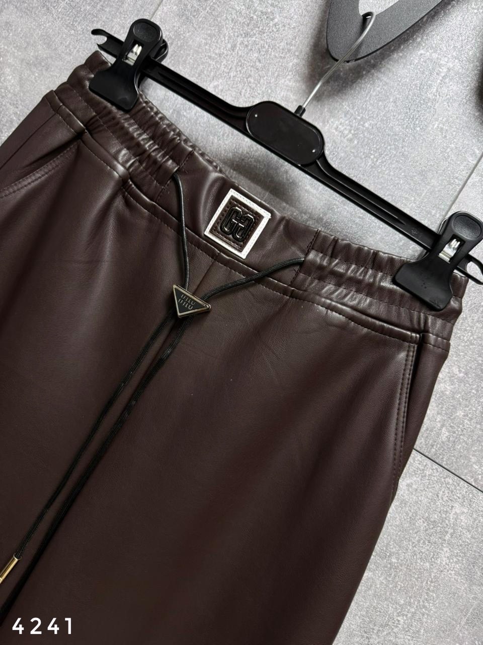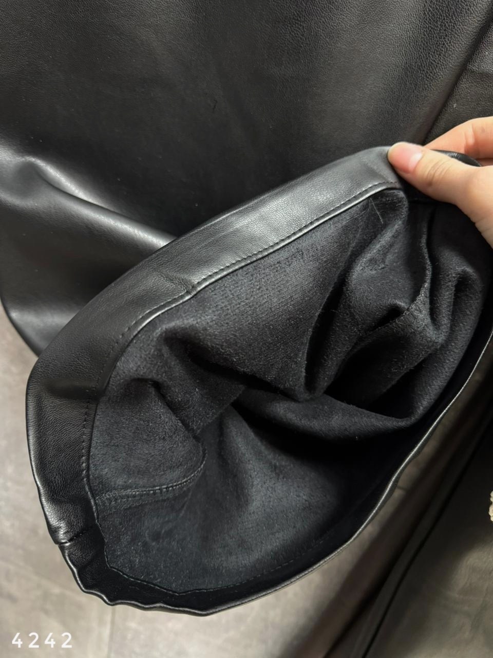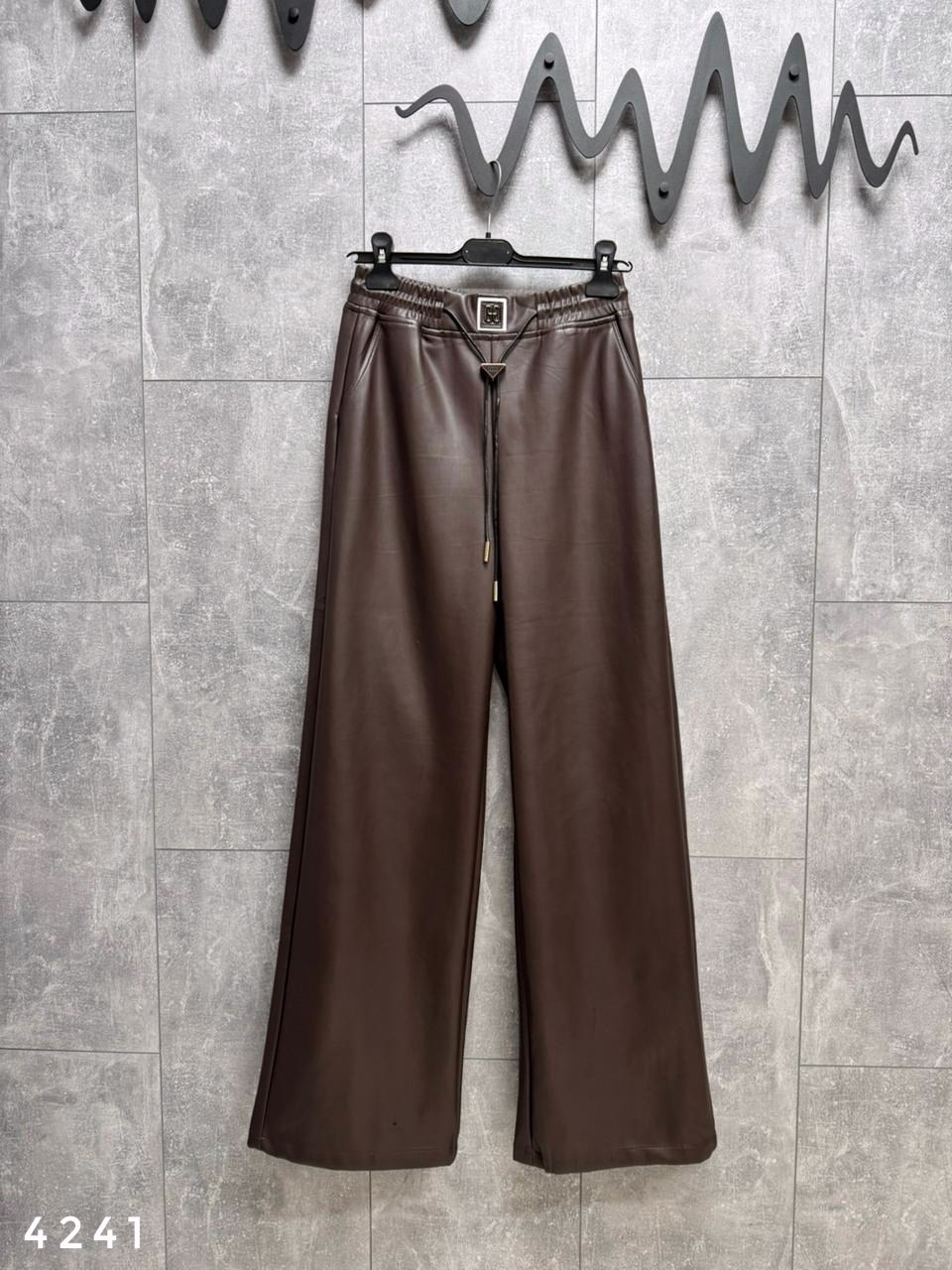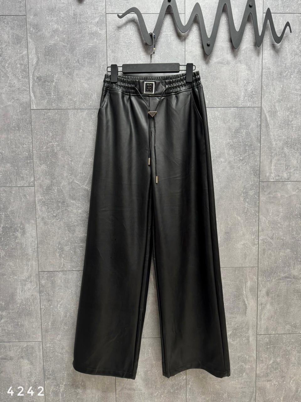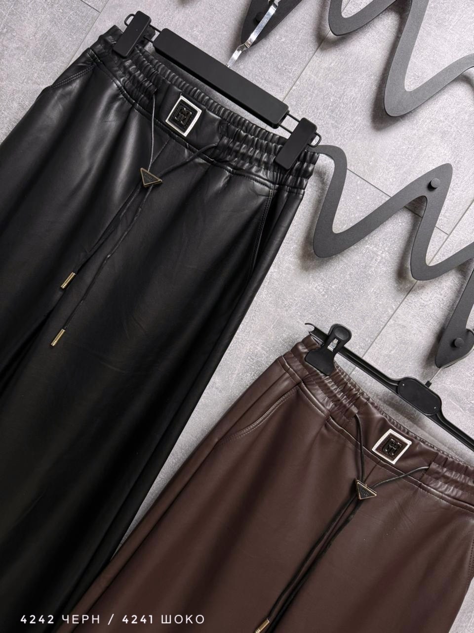 Брюки теплые из матовой экокожи на резинке, арт 4242 черный ; арт 4241 шоко Длина по внешнему шагу 109см / по внутреннему 76см.